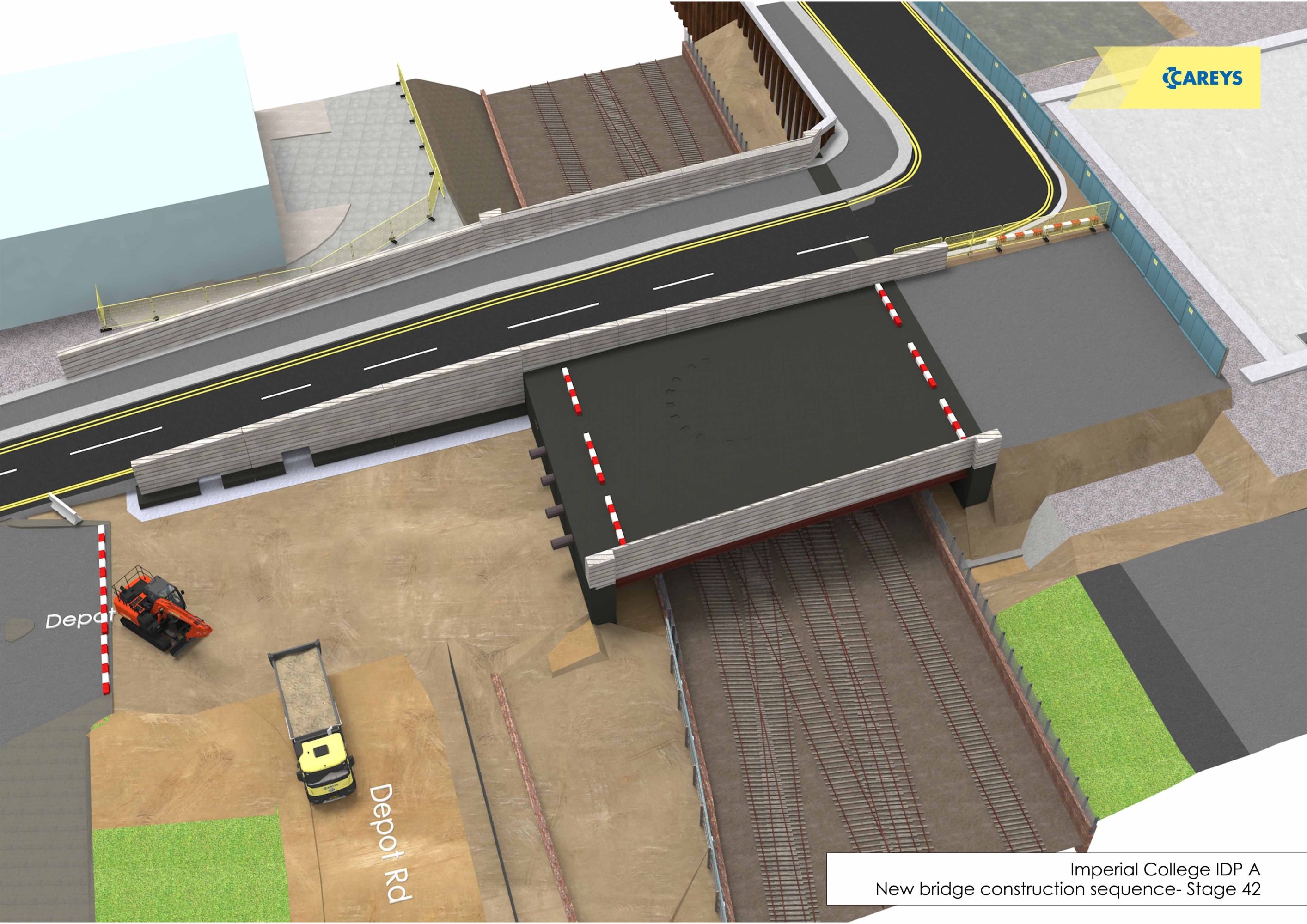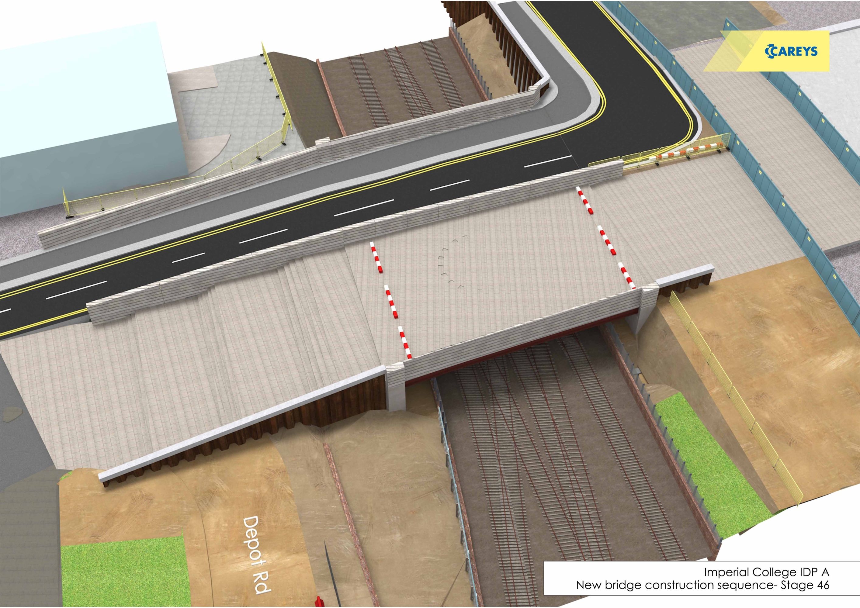 Once delivered, the new entrance, bridge and landscaped approach will replace the current ‘curved’ bridge and construction access on Depot Road, providing a better pedestrian environment and a much improved junction interface with Wood Lane.