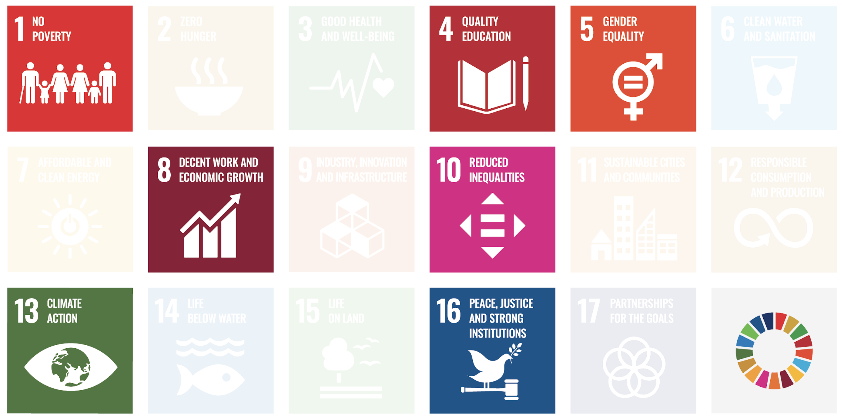 You will not be limited to addressing the SDGs highlighted here. Your work will touch on others, and the class will choose an additional case study - providing you with a chance to explore other SDGs in depth as well.