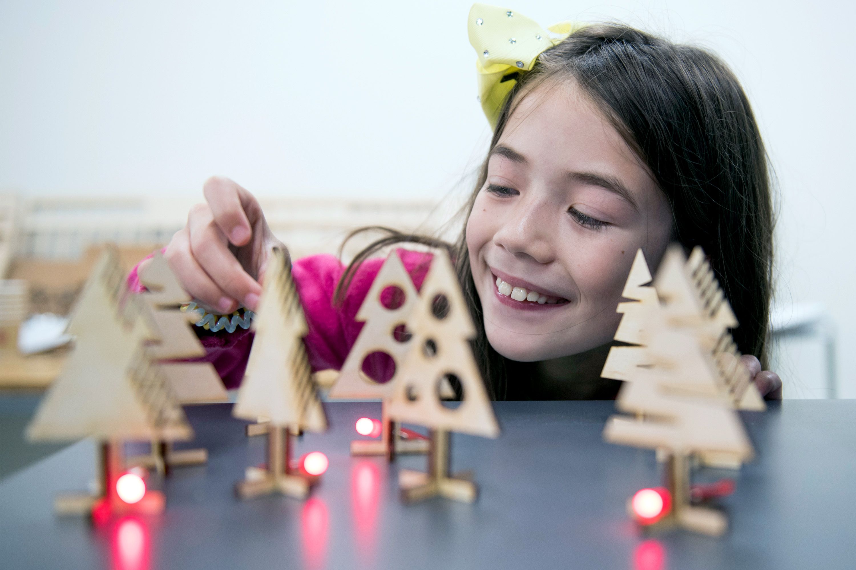 Children making Christmas decorations in the Invention Rooms at Imperial's White City Campus in 2017. The Invention Rooms were opened to the community with free activities and workshops designed for people of all ages to get creative by making and prototyping. (Photo credit: Danny Fitzpatrick)