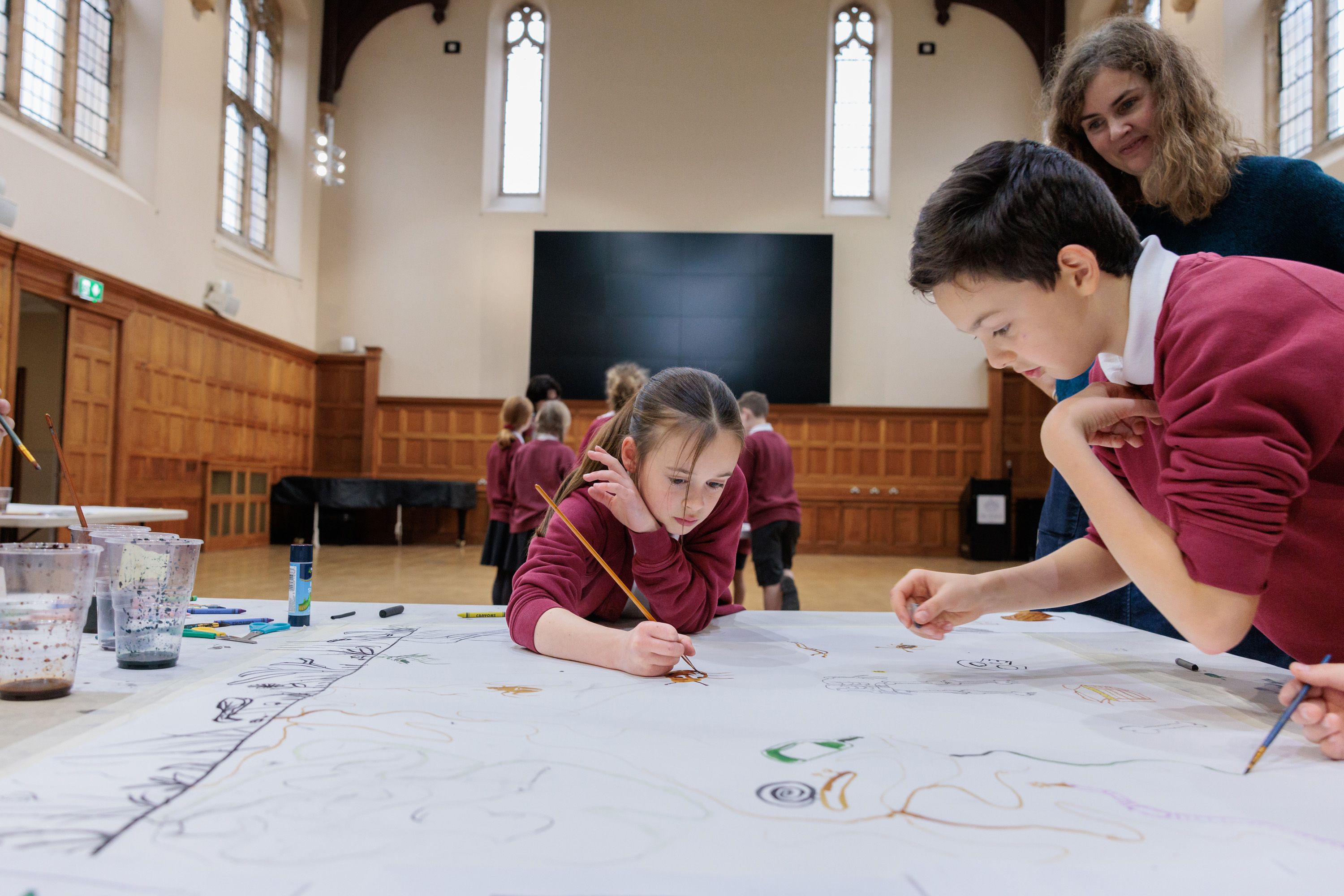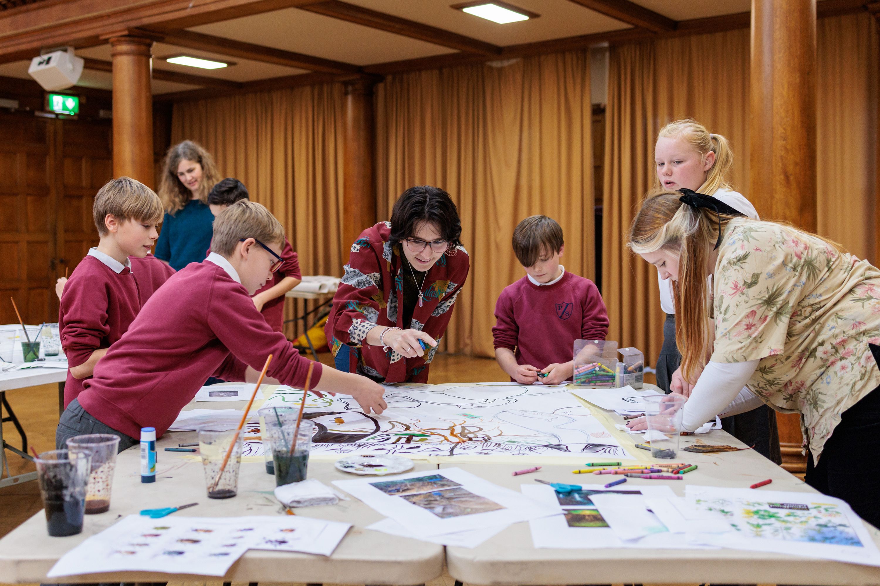 Outreach's Silje Andersen helping to run a Creative Roots workshop run in Oundle. Students had the chance to look at life above ground while imagining and hypothesising what life might be like under ground. (Photo credit: Brendan Foster)