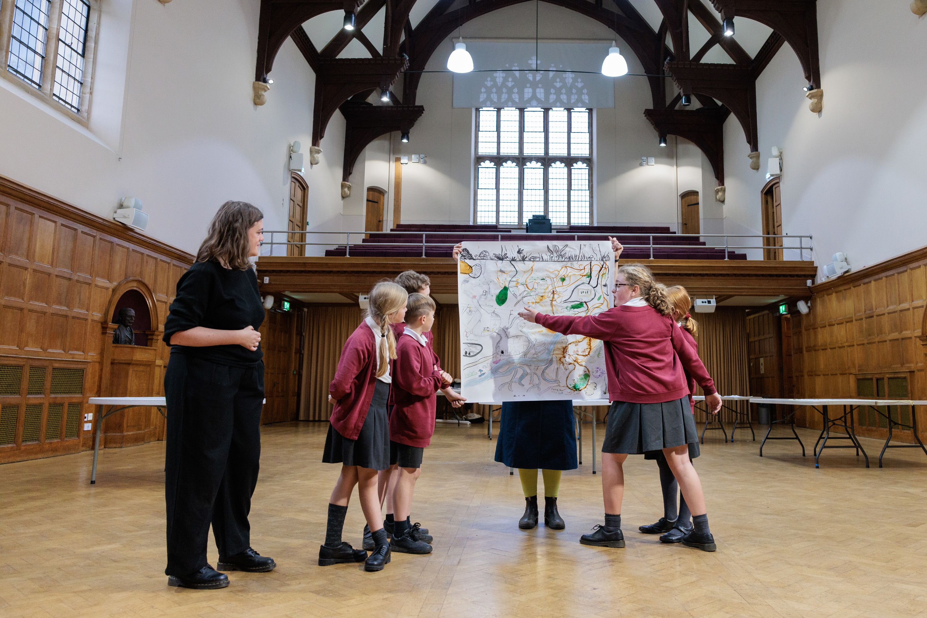 Artist Steph Von Reiswitz at a Creative Roots workshop run by the Outreach team. Students had the chance to look at life above ground while imagining and hypothesising what life might be like under ground. (Photo credit: Brendan Foster)