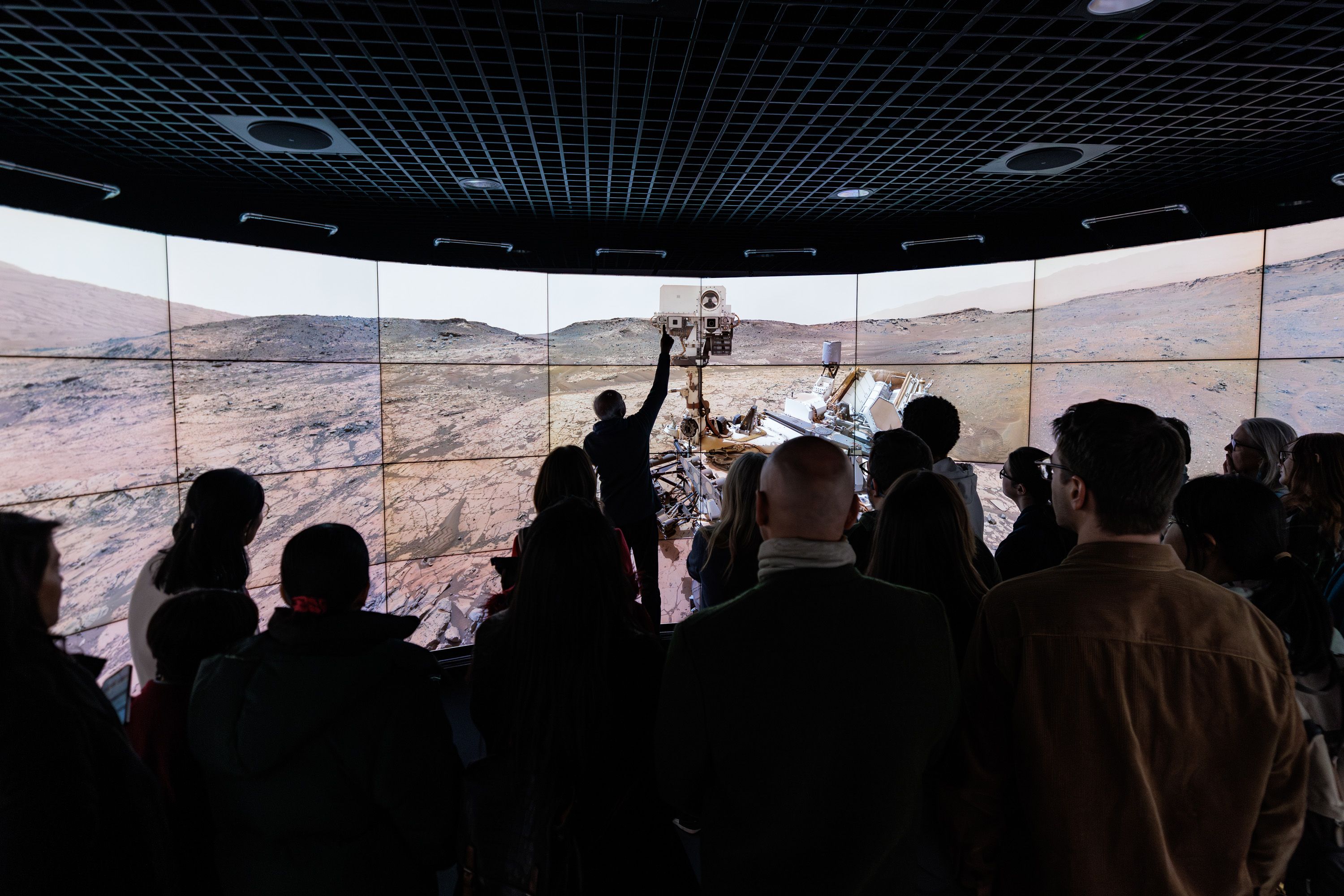 Imperial Lates: Space explored the wonders of the cosmos in an evening of martian merriment and space experiments. Pictured: Professor Sanjeev Gupta (Earth Science and Engineering) in the Global Data Observatory. (Photo credit: Brendan Foster)