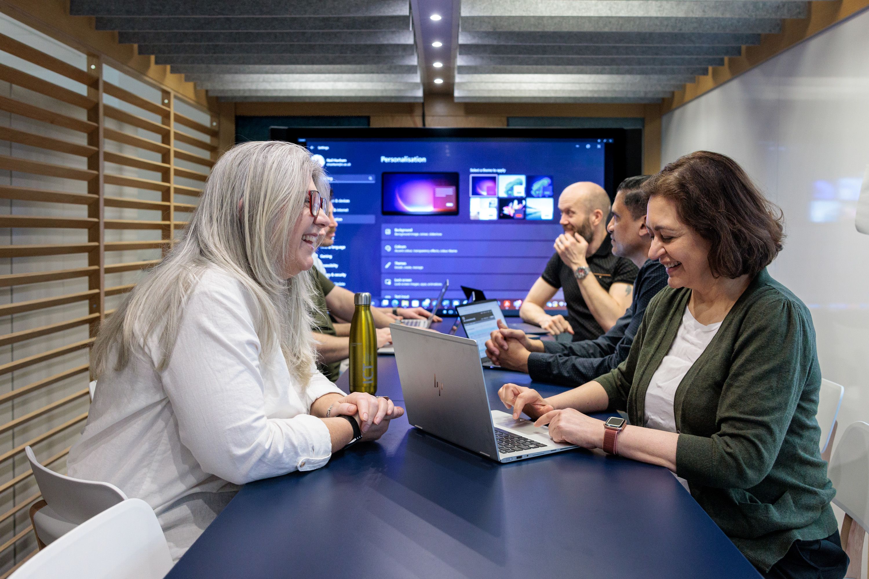 The Digital Work Place and End User Computing teams in ICT support flexible working and learning to staff and students by providing the technology to make work and study easier. Bouquette Kabatepe, Digital Accessibility Officer (L), Ayesha Aziz, Business Analyst (R). (Photo by Brendan Foster)