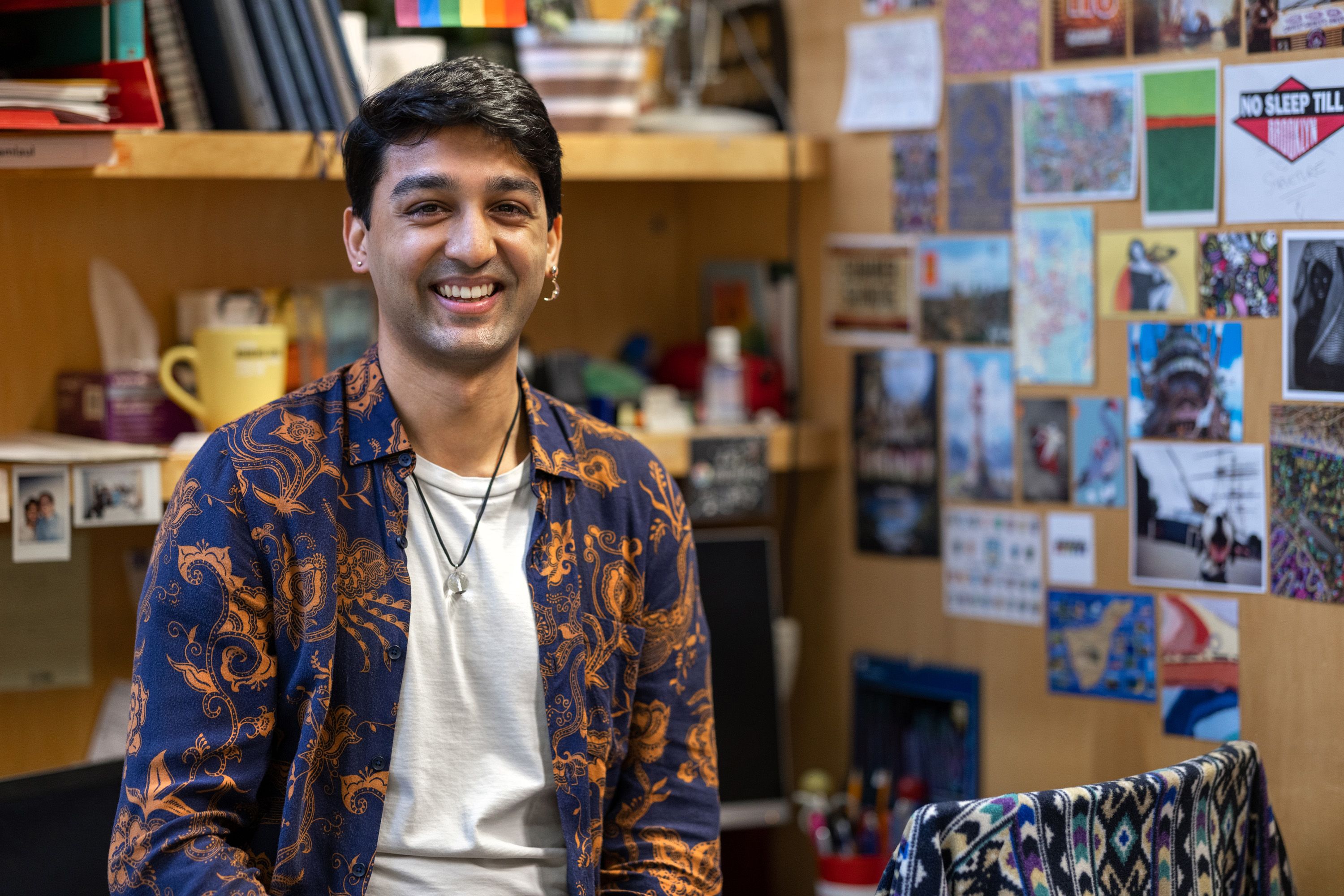 Kailash Ramlaul, Research Assistant in the Department of Infectious Disease, Faculty of Medicine. Kailash was photographed for LGBT+ History Month, 2022. (photo by Thomas Angus)