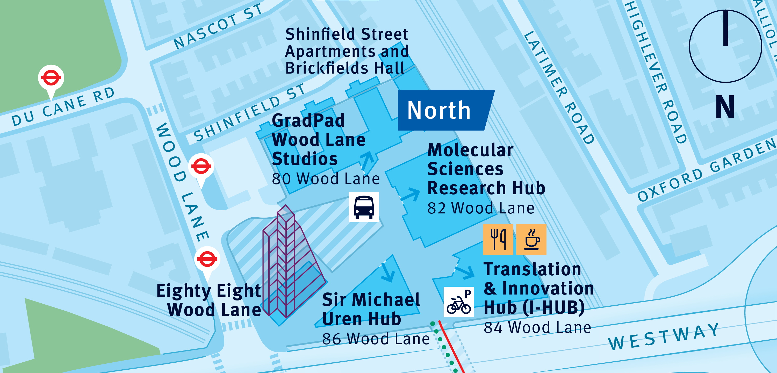As part of Imperial College's White City Campus North, I-HUB has a vibrant neighbourhood of buildings: