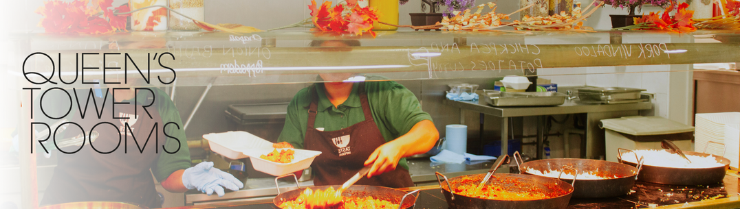 The Queen's Tower Rooms offers fresh Indian street food! Choose a main meal, a side of samosa, onion bhaji, naan, poppadum, or salad, alongside a refreshing drink, and get your fill of delicious curry.