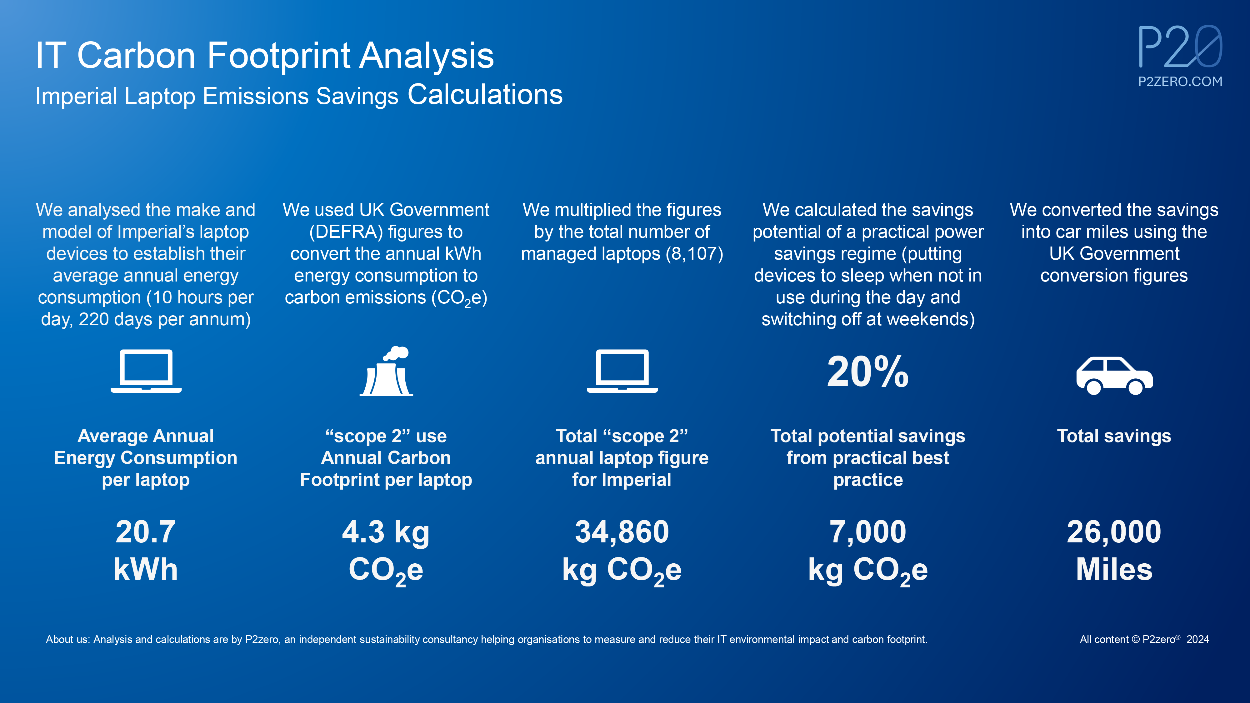 The above infogram shows ICT's calculations for Imperial managed laptop emissions, as: