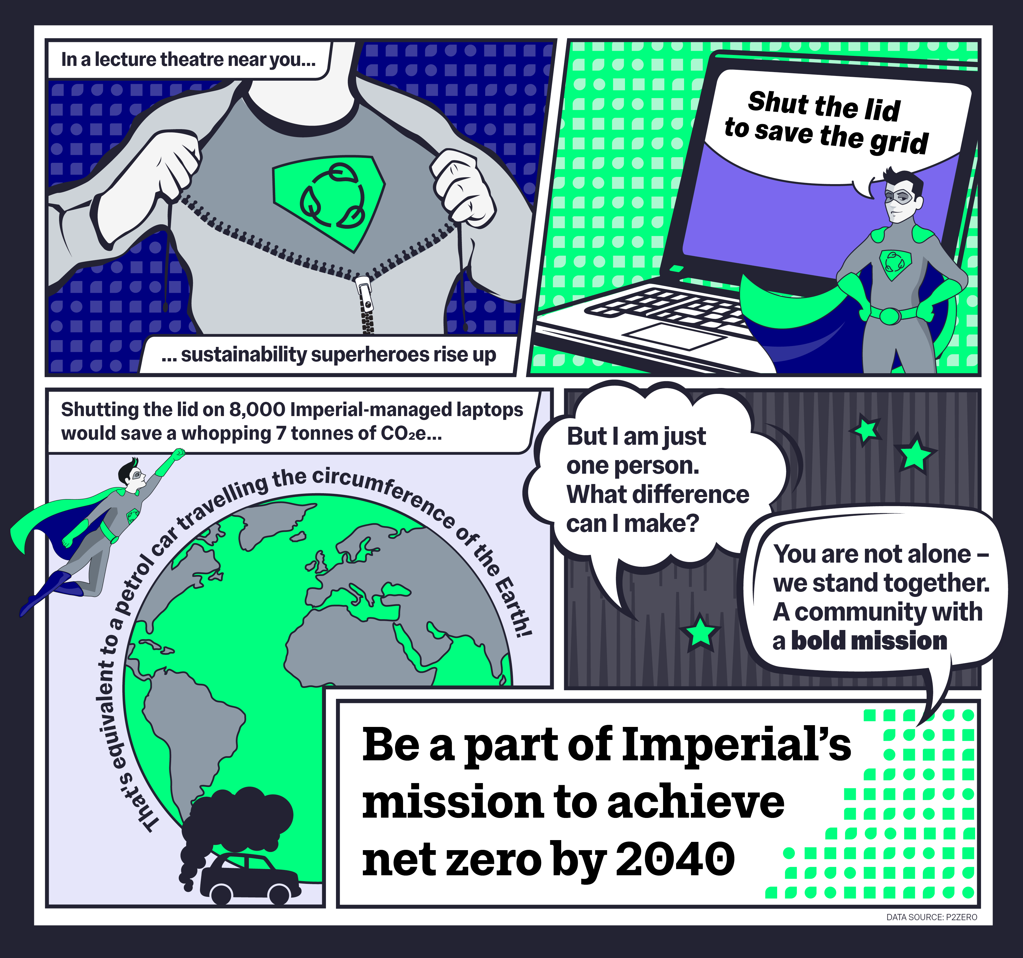Driven by a bold mission to achieve net zero by 2040 the ICT team are fighting to reduce Imperial’s carbon footprint by lowering energy usage that we get from the National Grid.