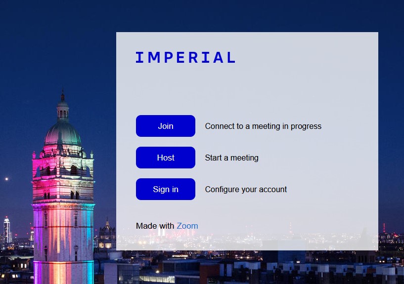 As part of the Imperial College licence, all staff and students will be able to access Zoom using your Imperial College username and password. If you are using a personal device you can access Zoom through a web browser or through the Zoom Client (desktop app). It is recommended that you install the desktop app when using Zoom, as this provides a better user experience and enables you to access all the available features.