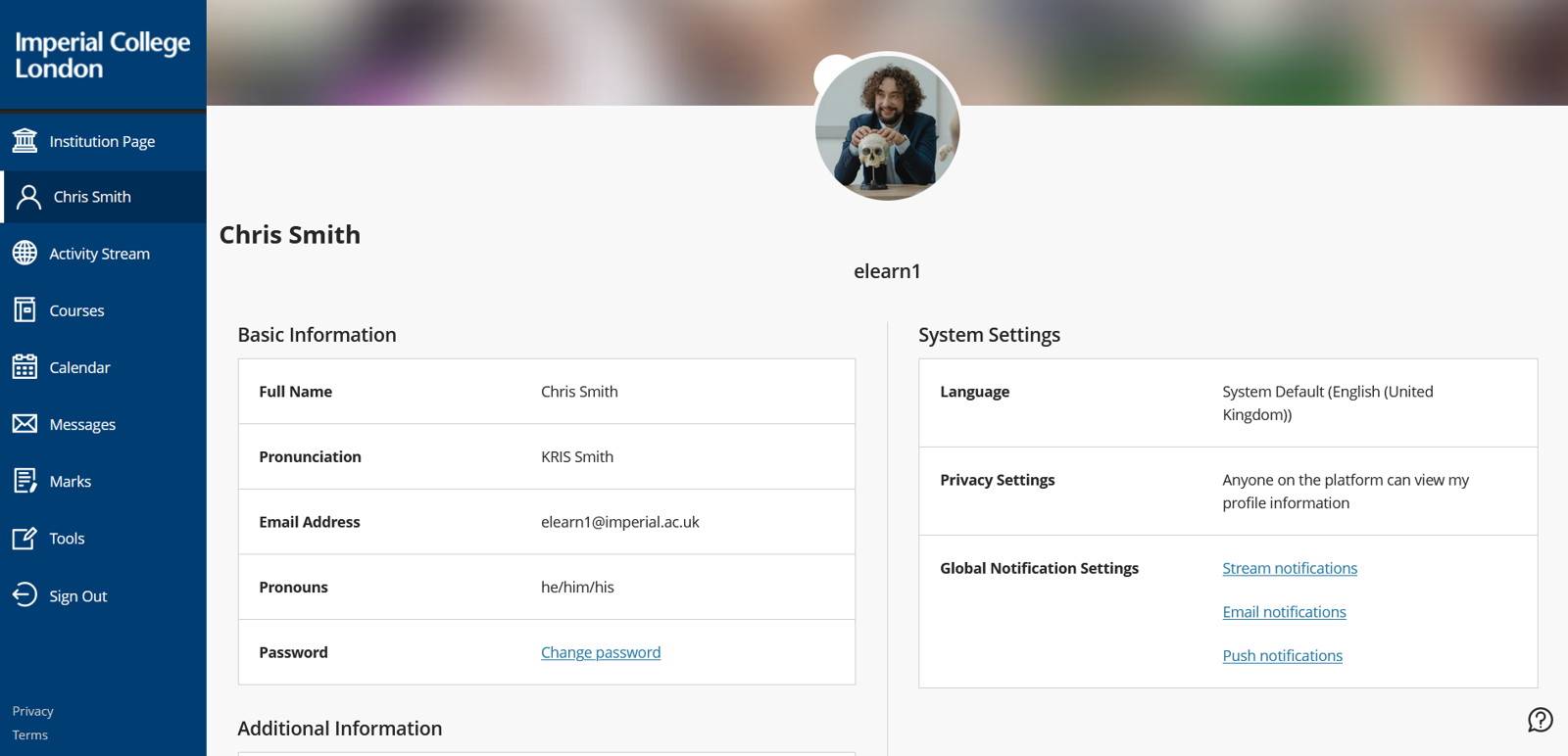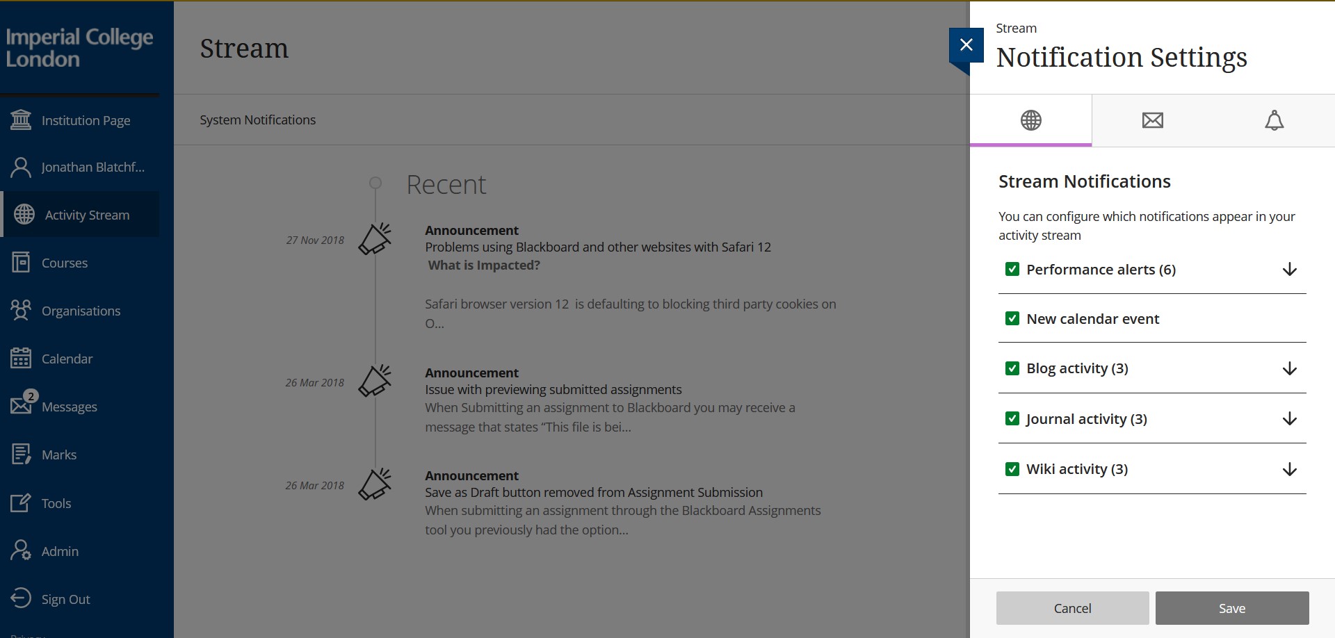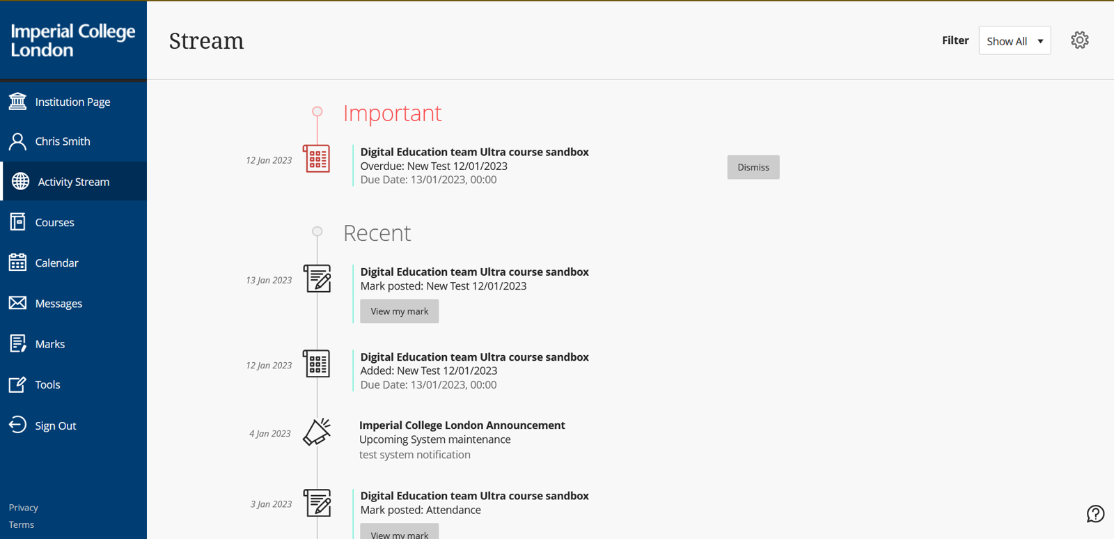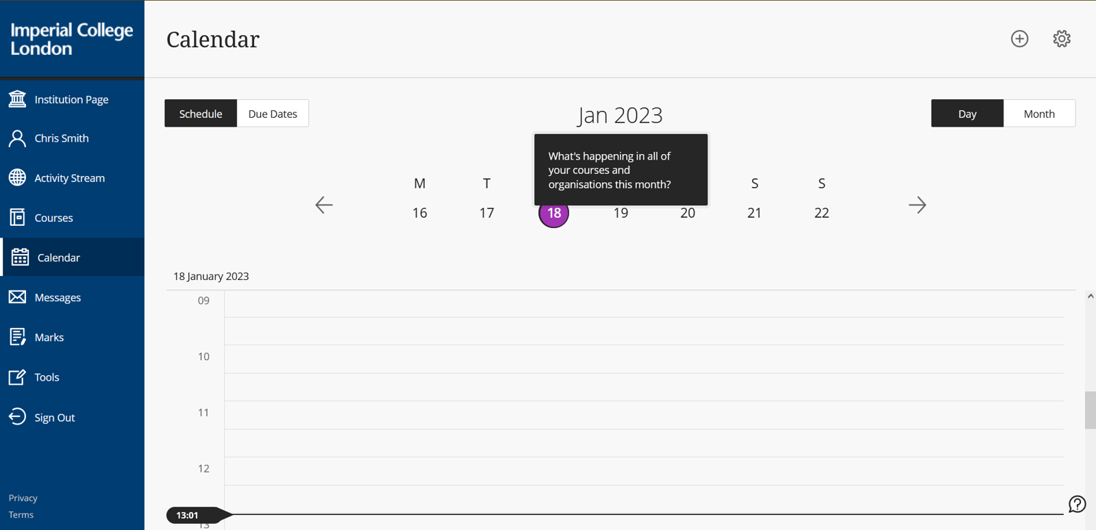 - Open the drop-down menu in the middle of the page and navigate between current courses and a previous semester or year.