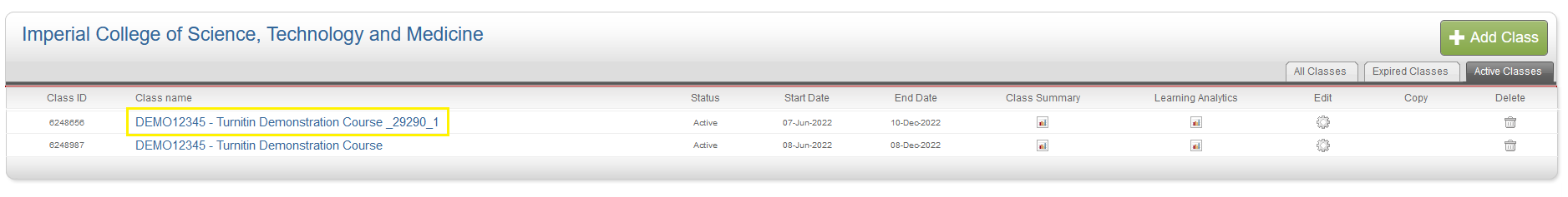 Example: DEMO12345 - Turnitin Demonstration Course _29290_1