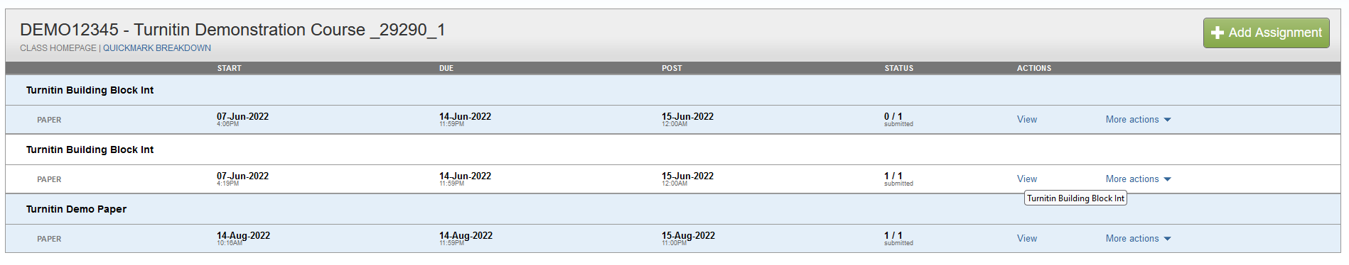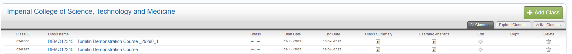Example: DEMO12345 - Turnitin Demonstration Course _29290_1