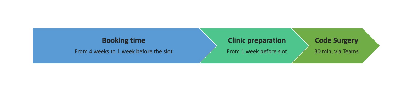 The timeline to book a Code Surgery appointment is summarised in the following chart: