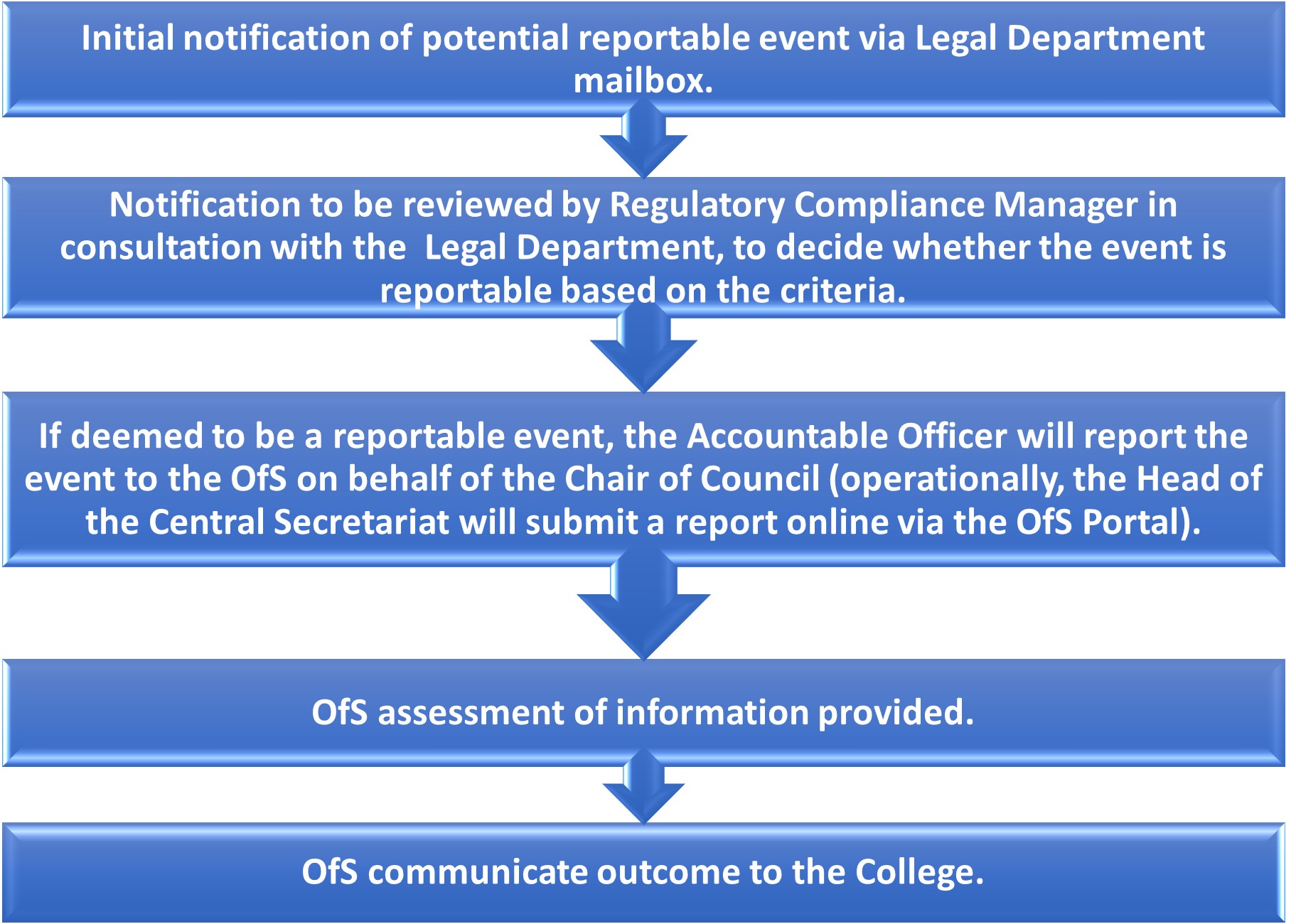 This guidance is intended to help staff at the College understand what events or matters might constitute a reportable event and what they should do if they become aware of an event that might be reportable.