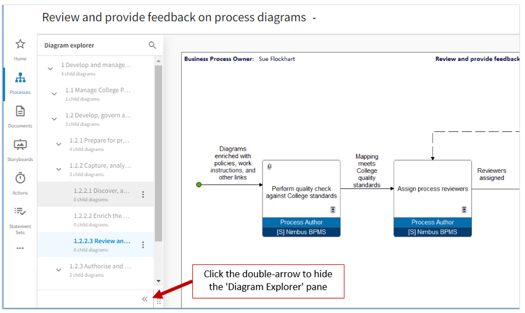 If you find that process diagrams are difficult to read within the web browser without scrolling, follow the steps below to reduce screen clutter and set your preferred zoom level. You only need to do this once and the browser will ‘remember’ your settings the next time you log in.