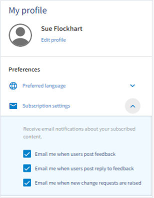 - Once you have subscribed to a diagram, you can fine-tune your subscription settings with some optional notifications. To do this, click on your name in the top right-hand corner of the screen and choose ‘Subscription Settings'