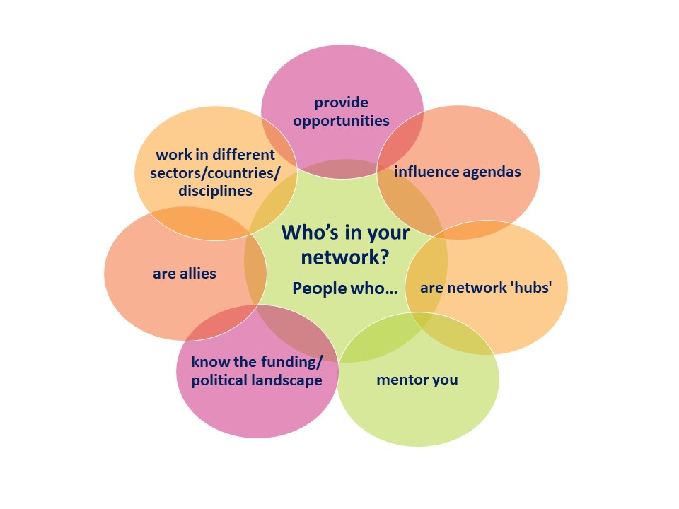 This might be people who sit on a funding panel, or on a university research committee – these are people who have a broader and perhaps longer-term view of the landscape than you. They can forewarn you of opportunities and challenges on the horizon and help you to be more strategic.