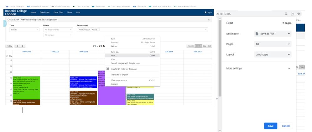 Once you have selected the desired view, right click with the mouse and select print. In the printer field select ‘Save as pdf’ and then click ‘save’. Save the document in your desired location.