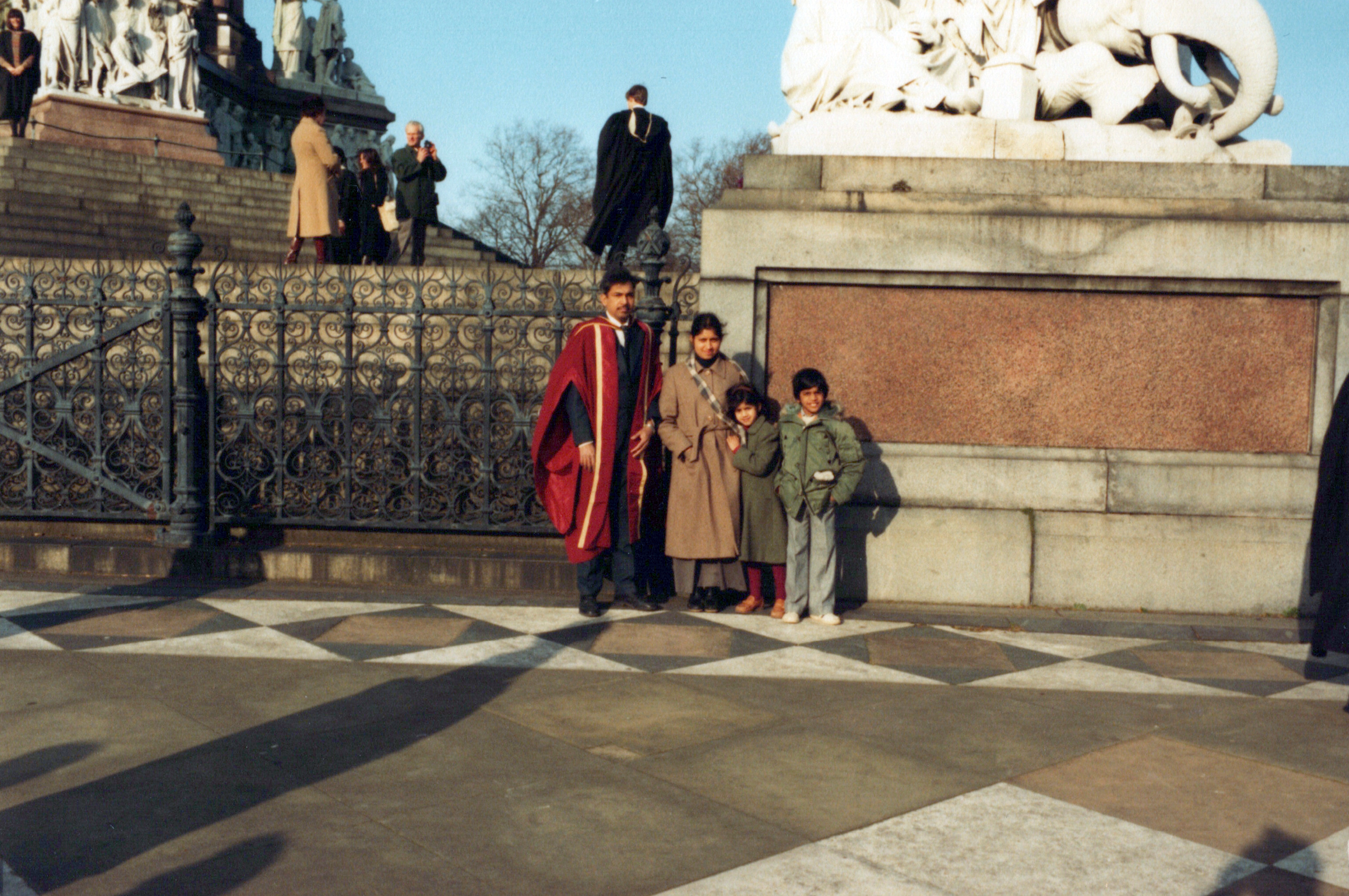 By the late seventies, he had married Padmini and we were born and Dad was now working in Rochester, Kent for Medway Building Group Limited as the Group Structural Engineer, now focusing on timber framed buildings. However it wasn’t long before the study bug bit him again and he registered at Imperial College London for a part-time research programme. This would eventually lead to a PhD in Timber Structures awarded in 1982 with his thesis on ultimate load behaviour of plywood stressed-skin panels.
