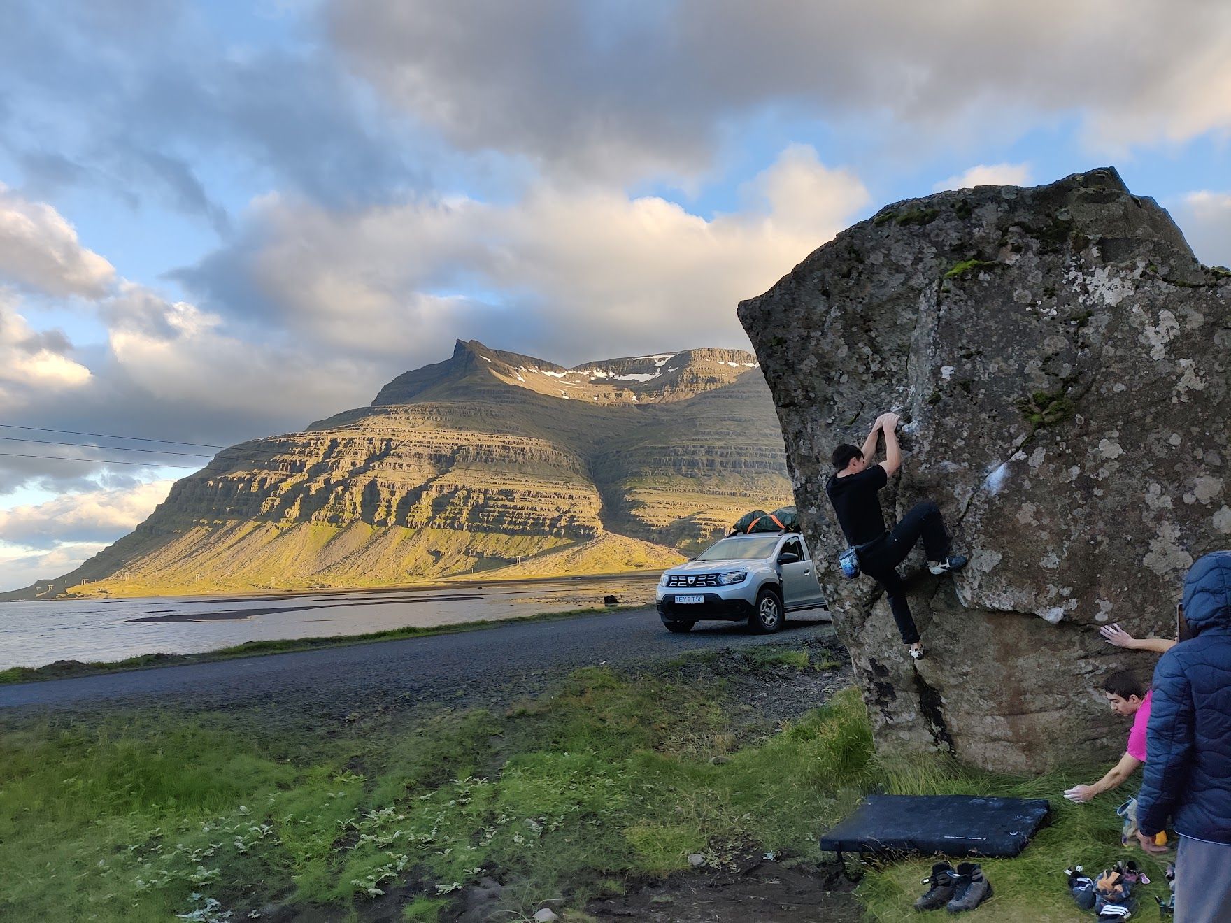 The expedition team planned first boulder ascents of grade ranges up to V8 in Iceland. In Iceland, which has a limited climbing season, there are still largely unexplored bouldering areas on the south coast and the east and west fjords. The rock is of volcanic origin. During the expedition in the first half of August the group aimed to develop their boulder first ascents skills, pass on the experience of organising a bouldering trip, and document all new climbs for future climbers. The team enjoyed Iceland’s spectacular rugged landscape, and managed to visit waterfalls, and a fumarole, and saw lava fields and glaciers, witnessing innumerable huge icebergs break from the main glaciers.