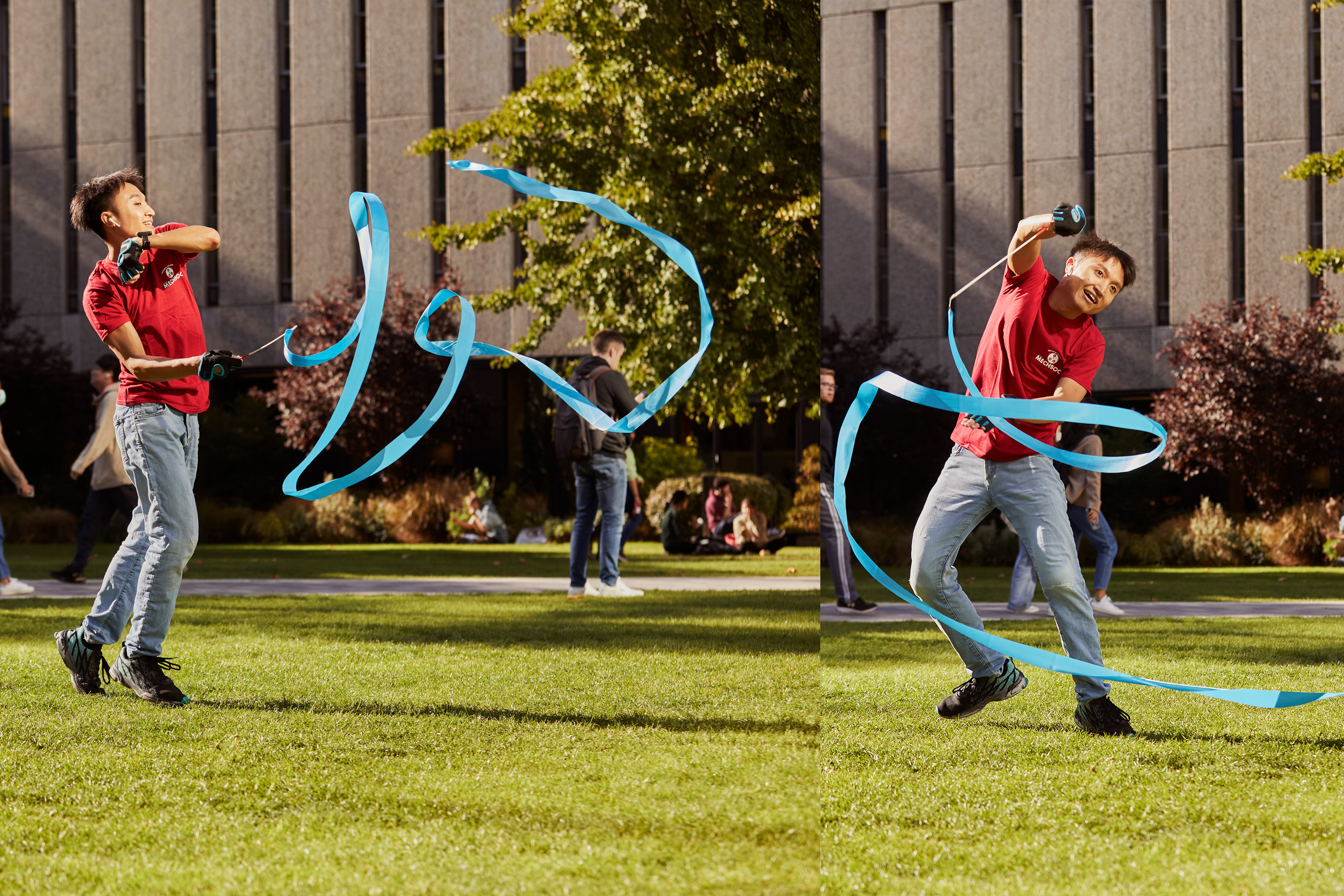 People tell me my ribbon dancing looks very graceful from a distance. From my perspective, though, it’s complete chaos. I have no formal dance or gymnastics training. I like just feeling the music.