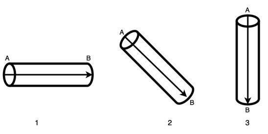 The voltage, which comes from a power source (e.g. a battery or potato), serves as the driving force that pushes the electrons through a conductor. The larger the voltage, the more force is available to push the electrons. A suitable analogy to underscore the concept of voltage and current is that of water flowing through a pipe. In Figure 1, we assume there is water in the pipe flowing from A to B. In (1), the water is not moving as both A and B are on the same level. In (2) and (3), A is at a higher potential than B and therefore, the water flows. The pipe is the conductor, the water is the current, and the relative positions of A and B are analogous to voltages. Voltage is the force that pushes electrons through a conductor.