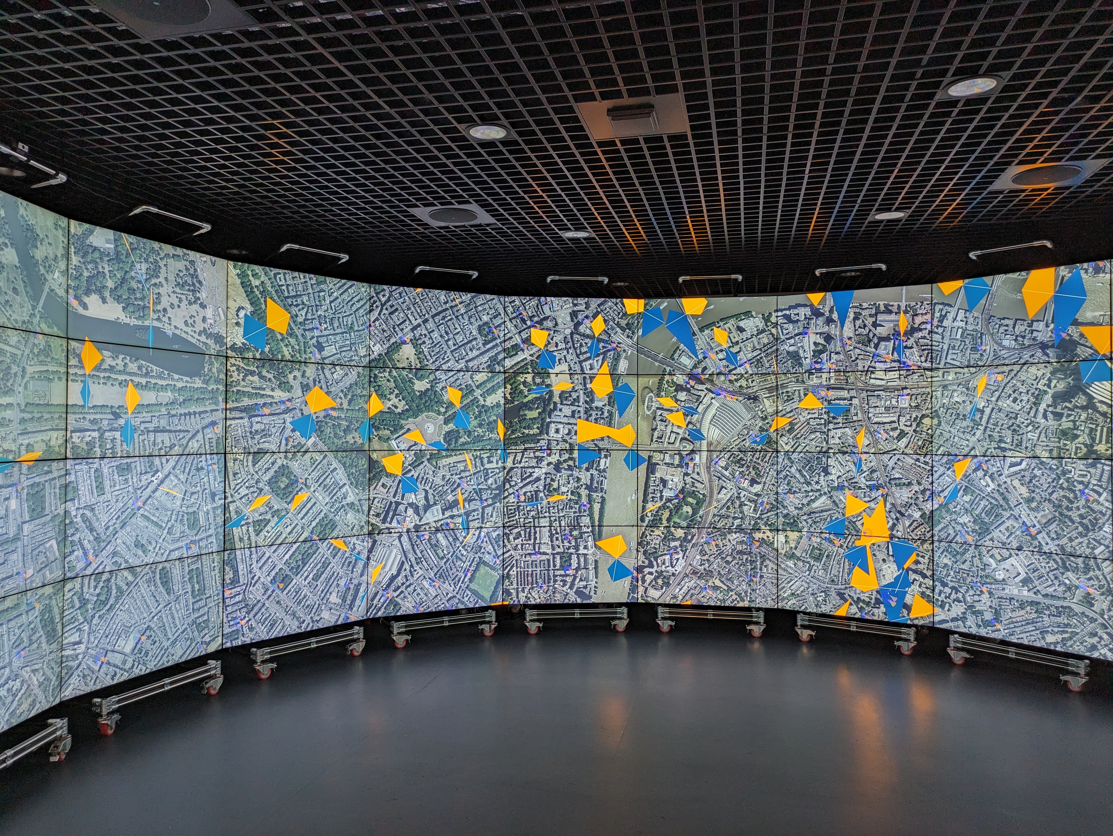 In one example. we can showcase a previous project that worked with TFL to investigate cycling routes in London. The below image is a snapshot of this visualisation, displaying traffic information such as the number of bikes at any given location as well as morning and evening commutes.