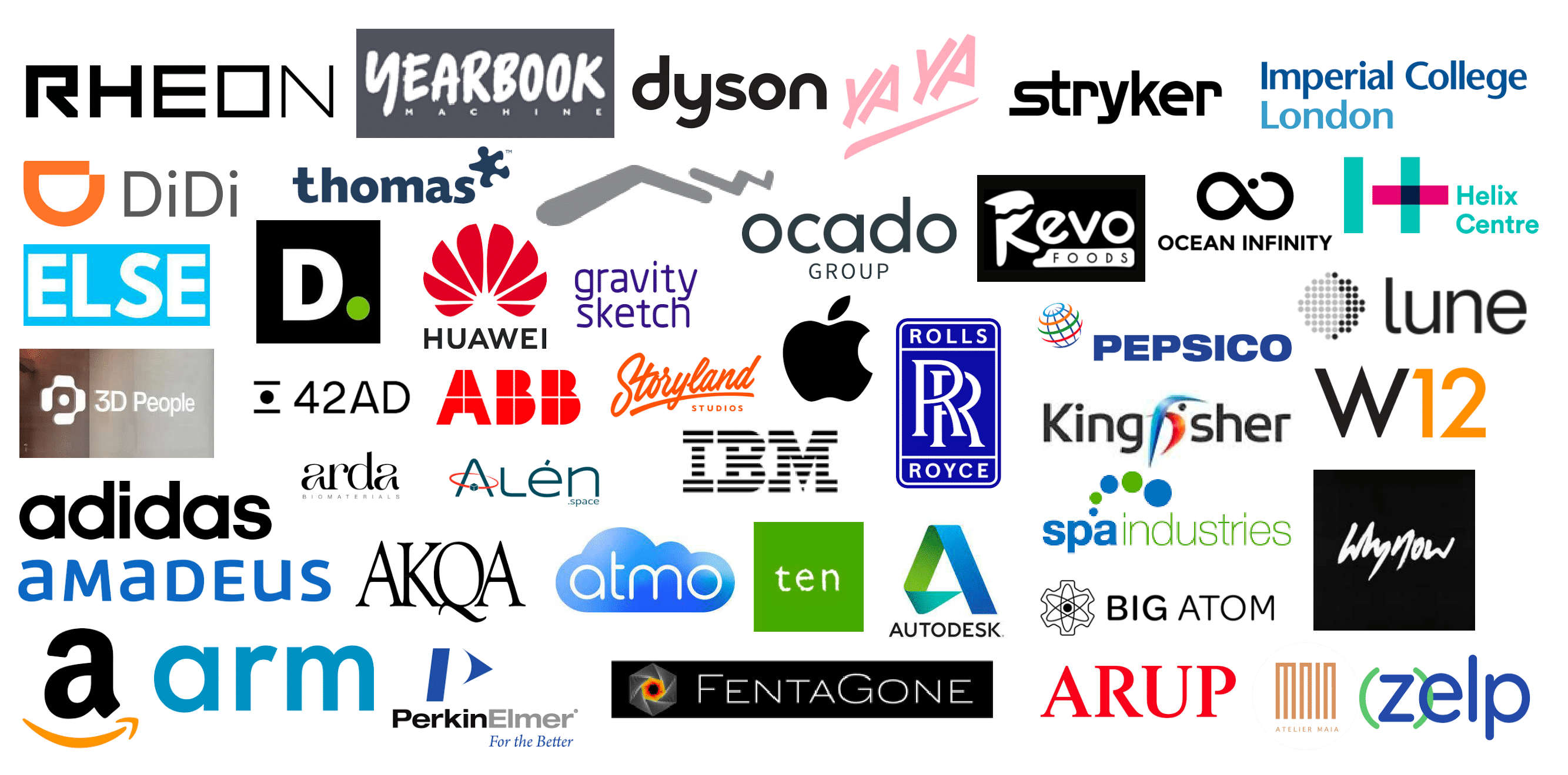 Other destinations: Automata Technologies, Bespak, Better Future Factory, Blackbird8, Brompton, BYD Auto, Cambridge Consultants, Coutts, Createc, Emotech, Felcana, Festo, Fisikal, Fitch, Goldfinger, Google X, Horizons Studio, Hyperganic Technologies, Jaguar, Landrover, Jason Bruges, Kew Steam Museum, Kwickscreen, Microsoft Lift, Mindmusic labs, Monokoto, M-KOPA Solar Labs, N26, P&G, Proximity London, Q-Bot, Quarterre, Random International, SafetyNet Technologies, TGO, TH3DOT SL, The Magic of Things, Tomorrow Lab, UN Studio, YidoBio, 3D People, 3M.