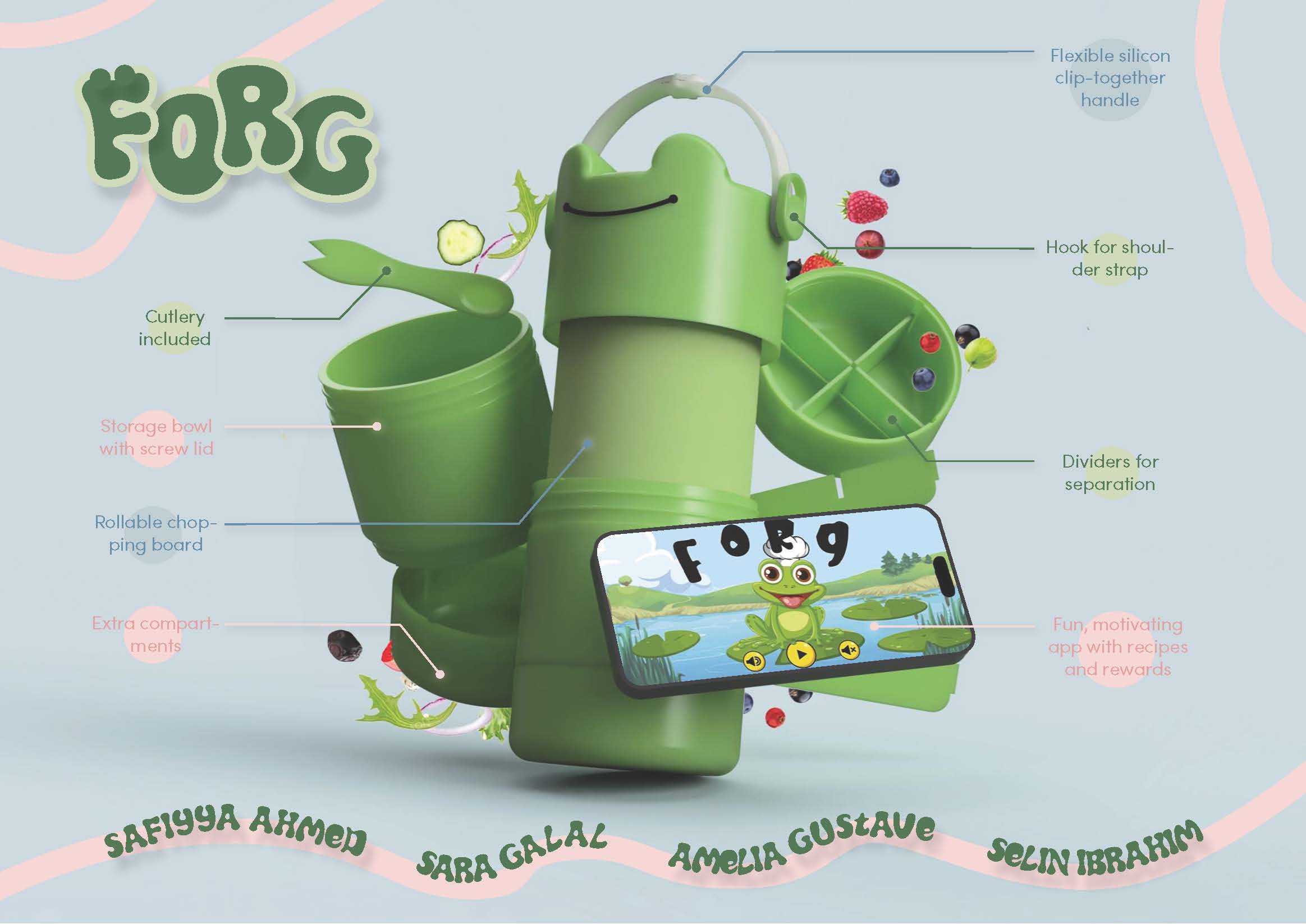 In 2023, less than 20% of children in the UK met the daily recommended intake of fruits and vegetables, and one in five 10-year-olds was obese (source: NHS), highlighting the need for early intervention. Forg offers a solution that provides children with the independence to prepare their own healthy snacks, whilst giving parents the confidence that they can do so, safely. A playful app, developed in collaboration with families and nutritionists, guides children through simple, step-by-step recipes that adapt to match their growing culinary skills. The app rewards children for their efforts, encouraging continuous engagement. Forg includes a foldable chopping board and child-friendly utensils, thoughtfully designed for ease of use and to foster a child’s sense of autonomy in the kitchen. Once snacks are prepared, they can be packed into the iconic Forg snackbox, perfect for taking to school and sharing proudly with friends. By enabling children to interact with nutritious foods in a fun and enjoyable way, Forg aims to help lay the foundations for a lifetime of healthy eating.