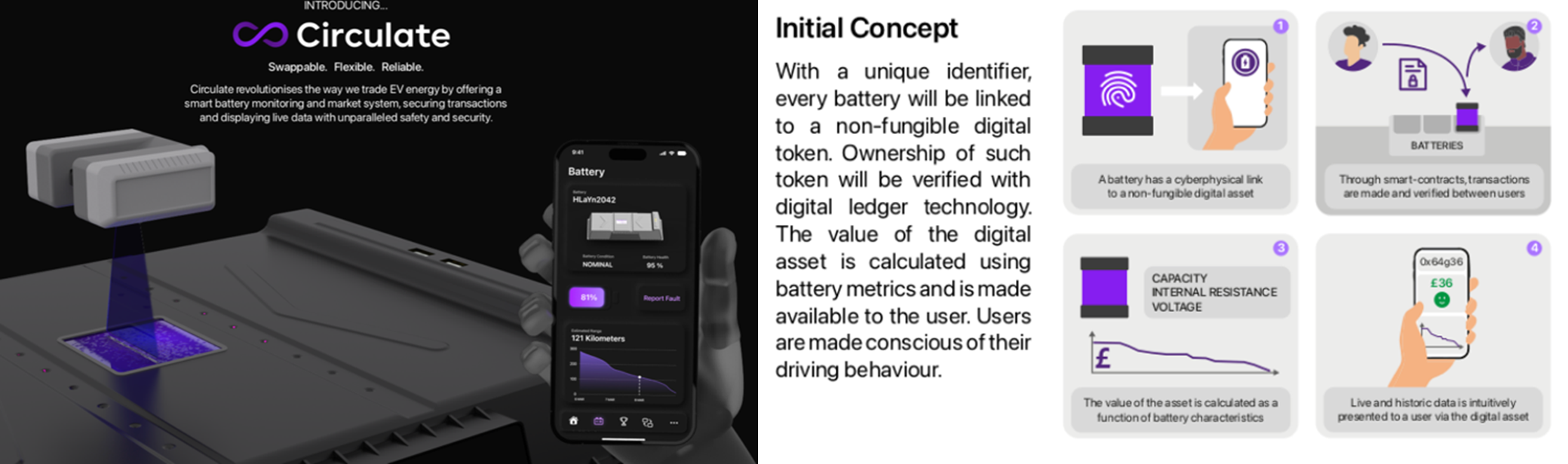 Leveraging the innovative concept of battery swapping, the team uniquely addresses ownership, security, and trust in battery performance, key for the upcoming era of electric vehicles. By integrating various technologies such as Distributed Ledger Technologies (DLTs) and Physical Unclonable Functions (PUFs), alongside a comprehensive system design, they demonstrate a remarkable level of novelty in their approach. Additionally, the team's work in developing the digital embodiment effectively brings the proposed future concept to life, showcasing a commendable level of technical analysis on each subsystem while maintaining a broad vision of the overall system concept.