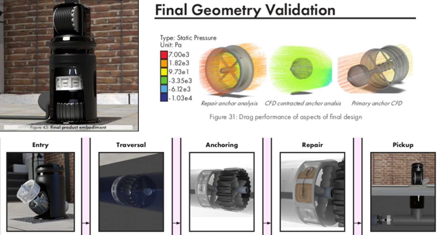 This project addresses the pressing issue of water pipe leaks in London, a problem expected to escalate in the coming years. The proposed solution involves the implementation of an autonomous robotic pipe repair system. The outcome of this project is exceptional. The suggested service, built upon an innovative soft robotic design concept, displays high level of originality. Additionally, the modelling, simulation, and visualization efforts showcasing both sub- and system-level outcomes are commendable.