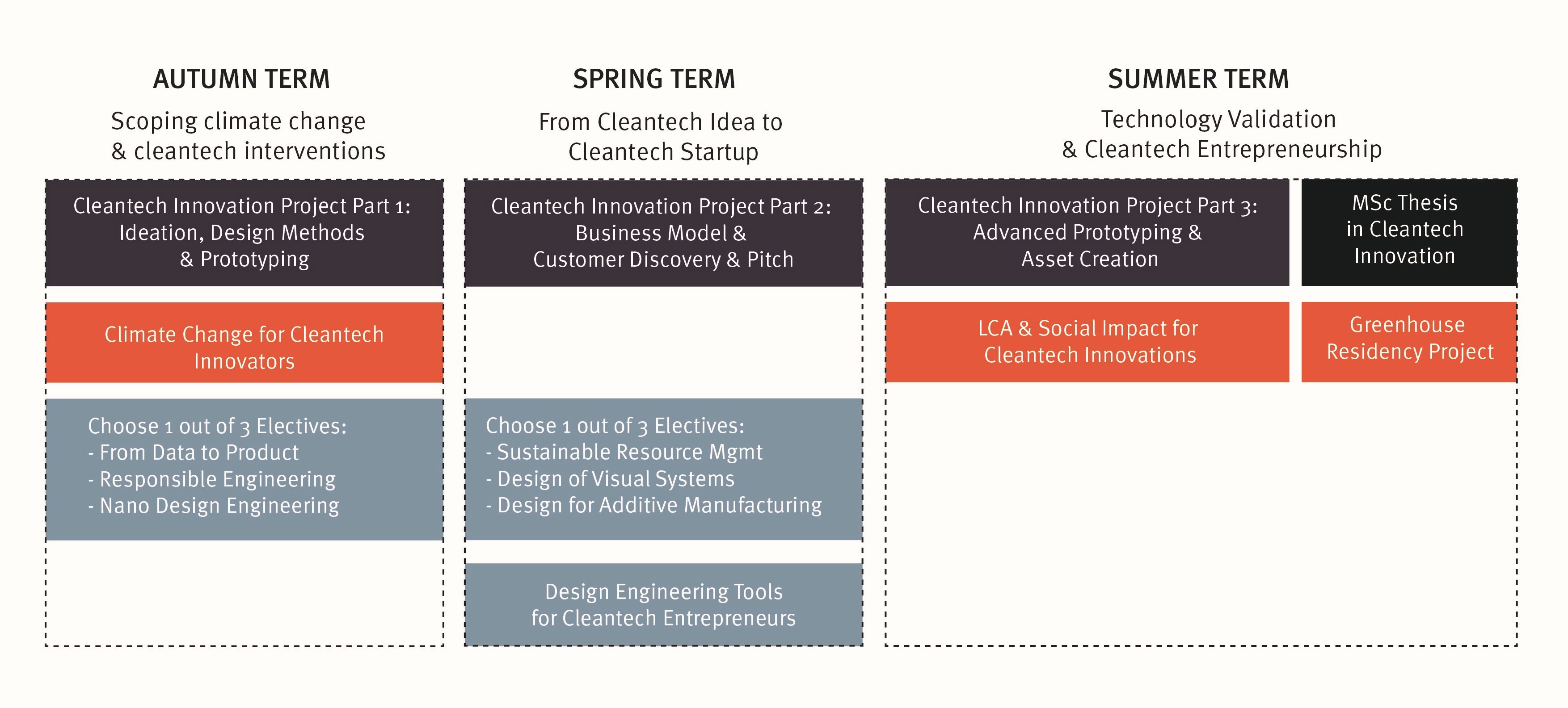 You will develop a deep understanding of the technical aspects of climate change challenges and formulate your own solutions to these within the cleantech themes of energy, materials, manufacturing, water, transport and food.