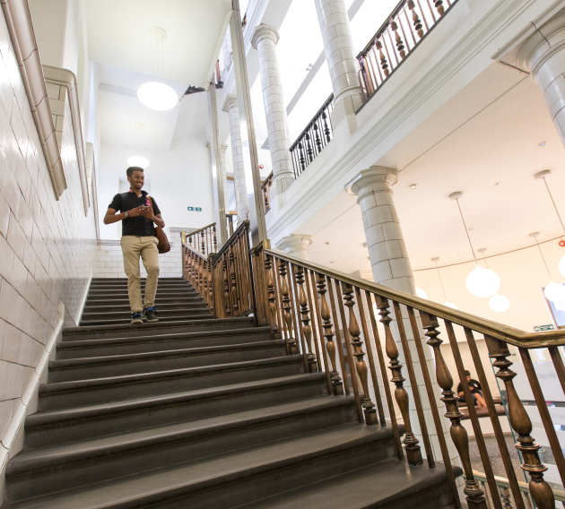 When you enter the Department, you will see our main reception area which is always busy, especially between 8.45am and 9am when our students make their way in for morning lectures. We have a central staircase which takes you up through the floors of the RSM and is an impressive sight when you first see it. We also have a central lift and small side lift which stop at every floor of the Department.
