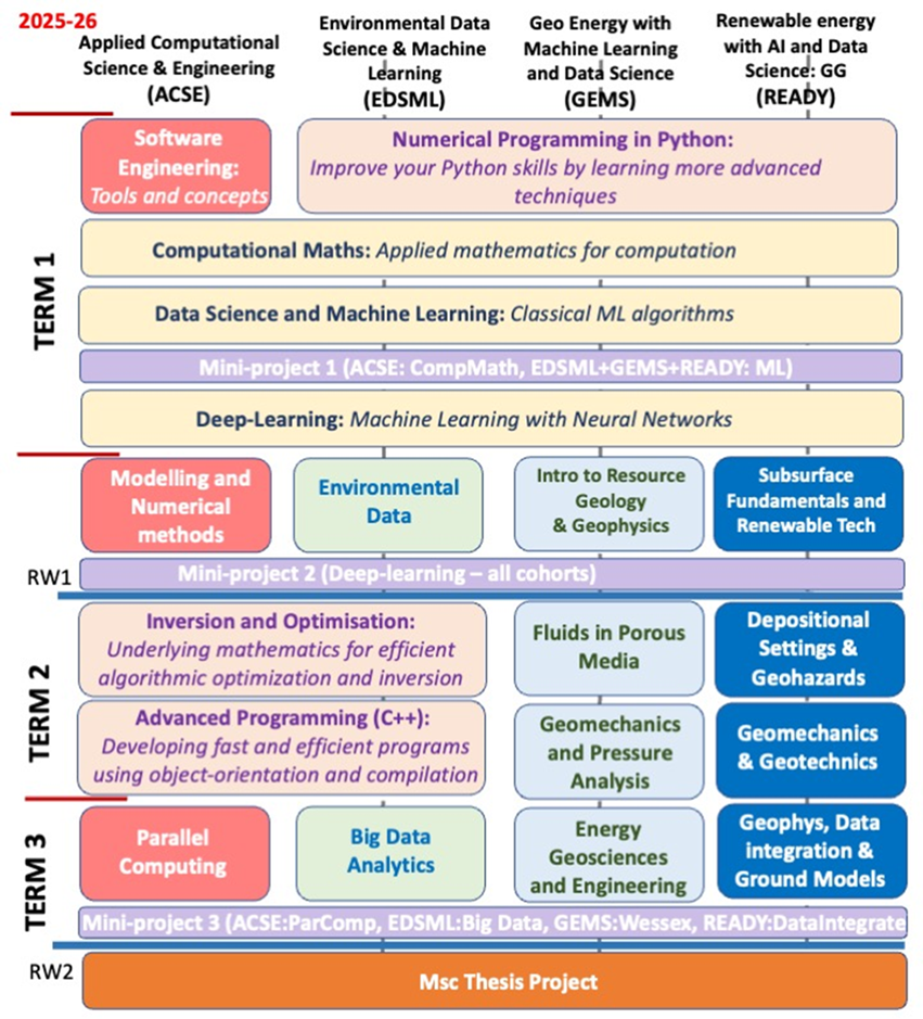 The Renewable Energy with AI and Data Science: Geology and Geophysics (READY) MSc programme is one of four computational programmes in ESE. The study programme consists of taught modules, mini projects, and one individual research project.