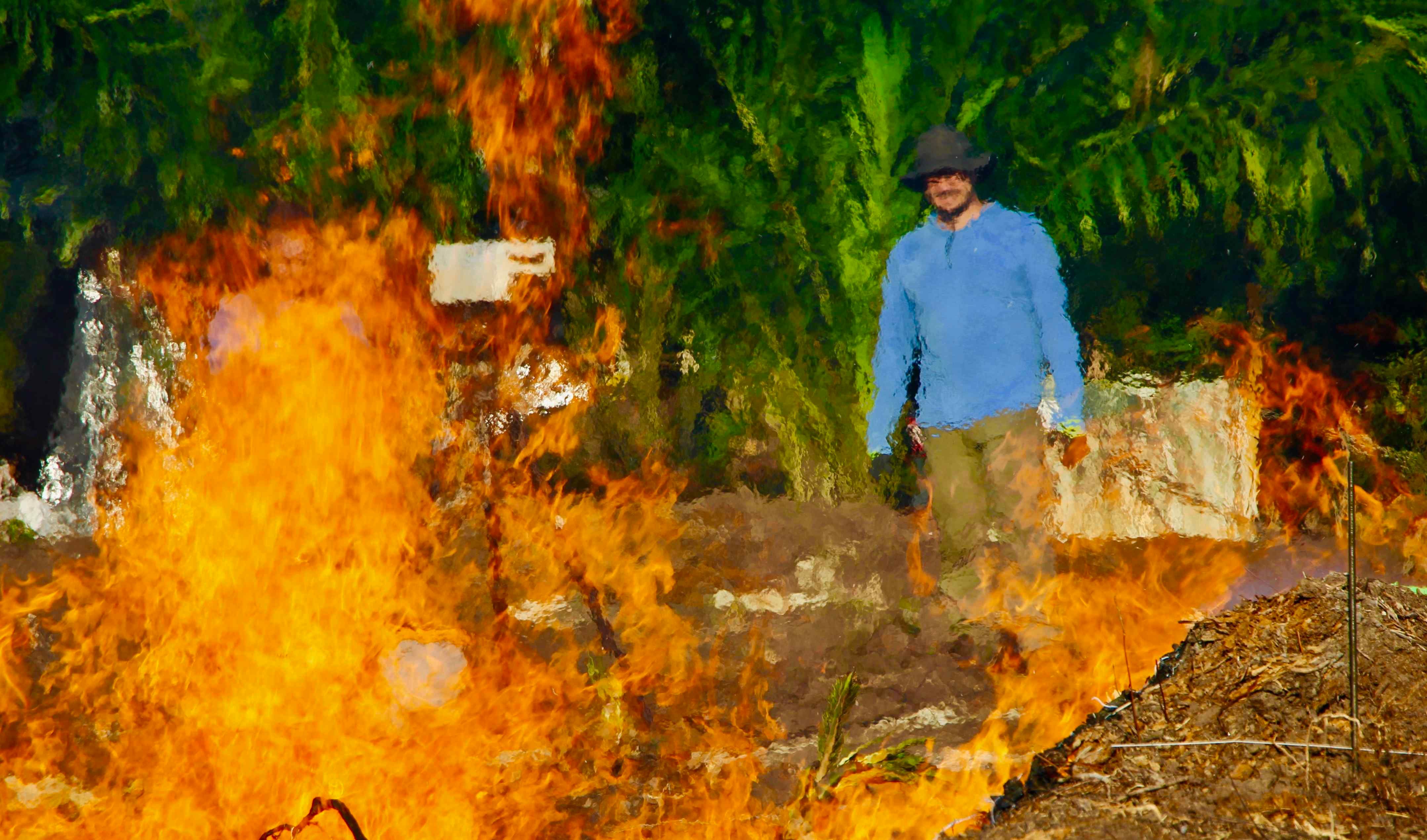 "A striking image that uses the fire and visual effects to create a painterly quality."