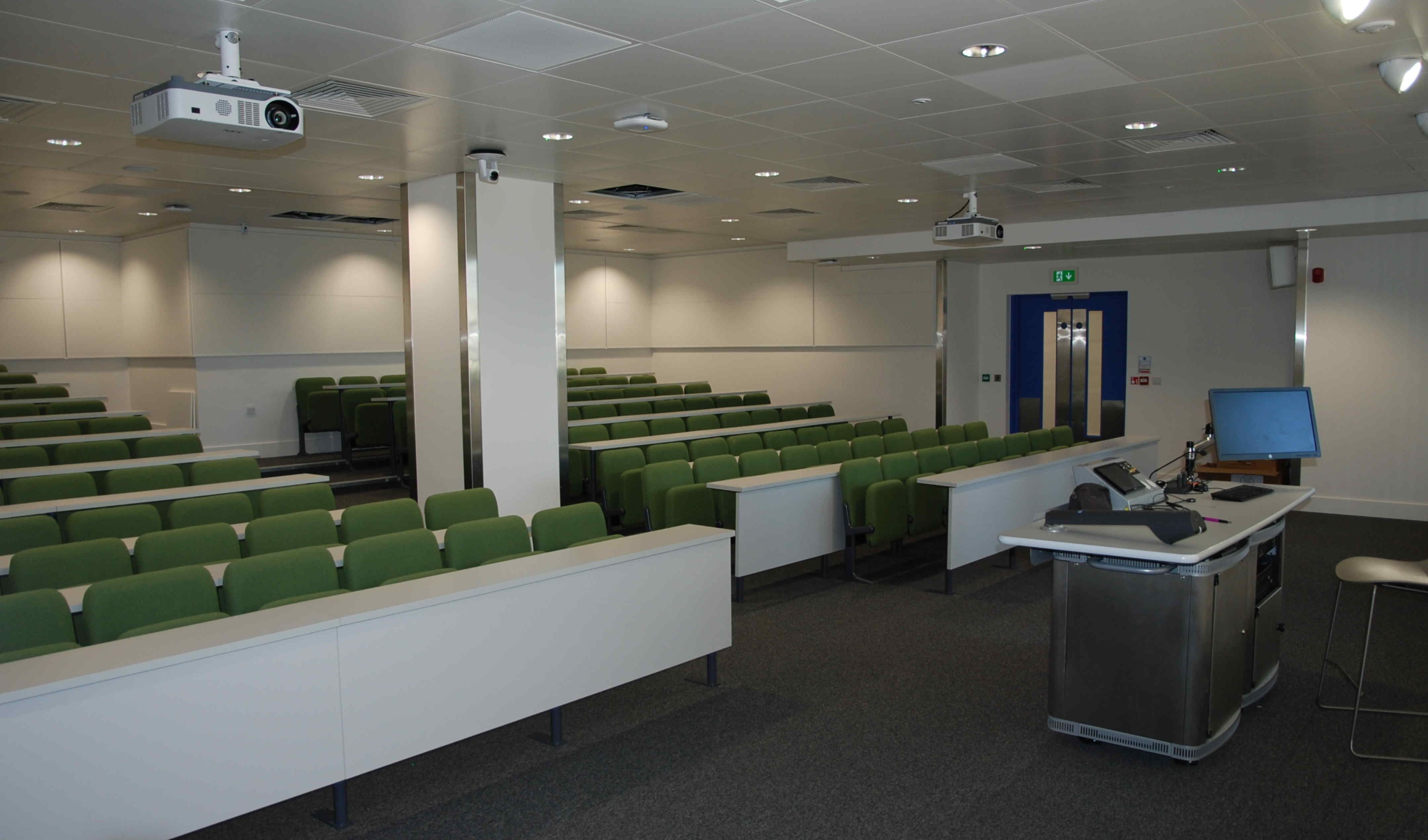 Equipment: Air Conditioning, Data Network Wireless , Display System - Data Projector (ceiling mounted) , Input for Laptop/Mobile PC , Lectern , Limited Access - Key Required , Seating - Tiered , Sound System - Fixed speakers , Sound System - Speaker microphone fixed , Whiteboard