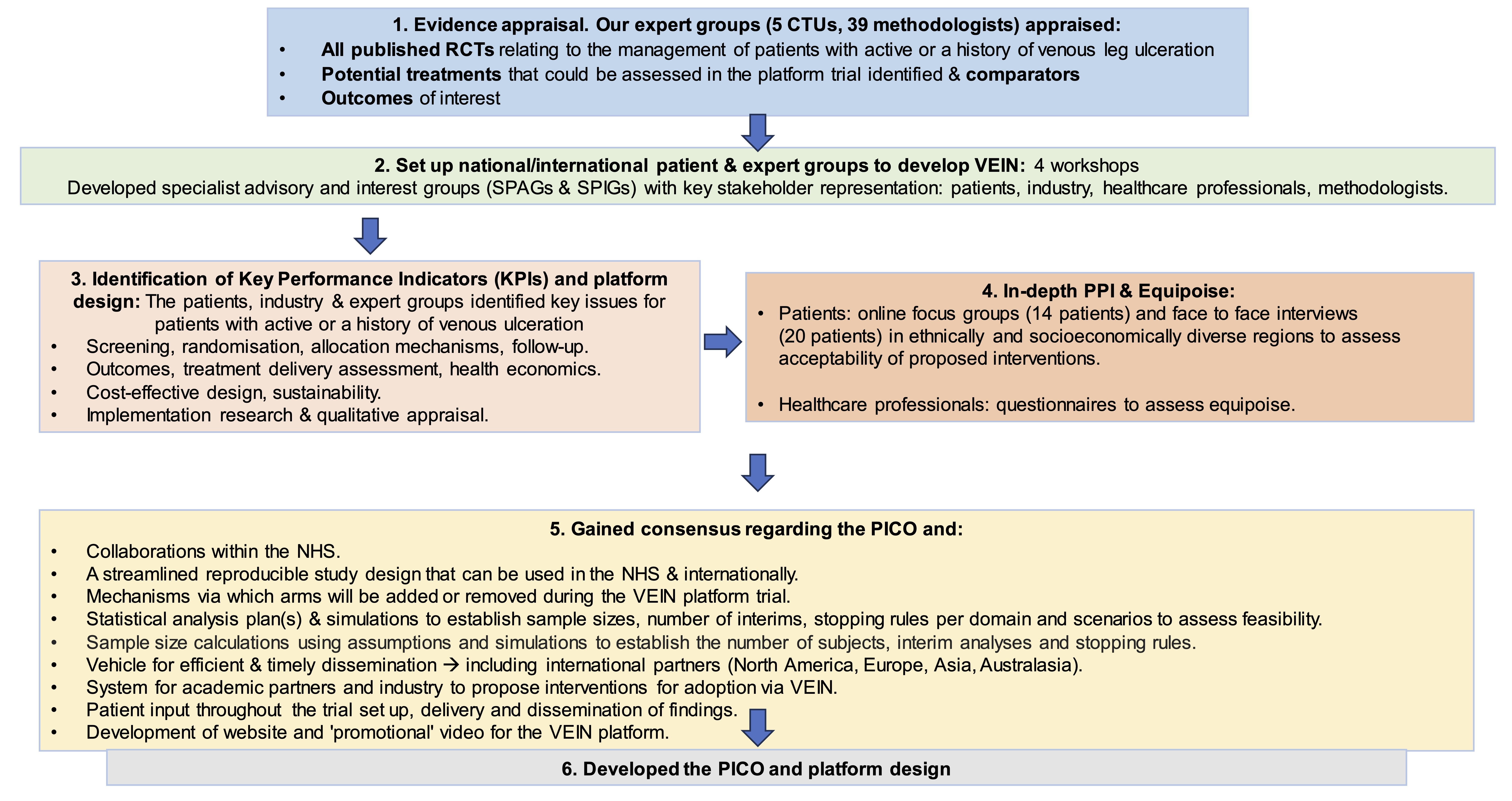 In March 2024, a funding application was submitted to NIHR HTA for the VEIN Platform study which aims to deliver a multicentre platform trial assessing the benefit of multiple treatments compared to standard of care (SoC) across 3 clinical domains.