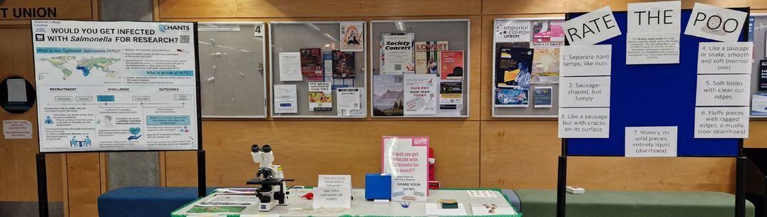 From bacteria to the Bristol stool chart, the excitement was buzzing around our stand at the Great Exhibition Road Festival on the 17th- 18th June, 2023. The underlying theme to the stand was the work we do as a Human “Challenge” Study research group. An infection challenge study is a type of clinical trial in which volunteers are deliberately exposed to an infection, with the aims of studying the biology of infections, the immune responses to it, and – eventually – to help test new vaccines, diagnostic tests and treatments. Human challenge studies have been used for many decades, but are often not very well-known. We wanted to discuss their uses, benefits and risks with the public, as well as how they are made as safe as possible.