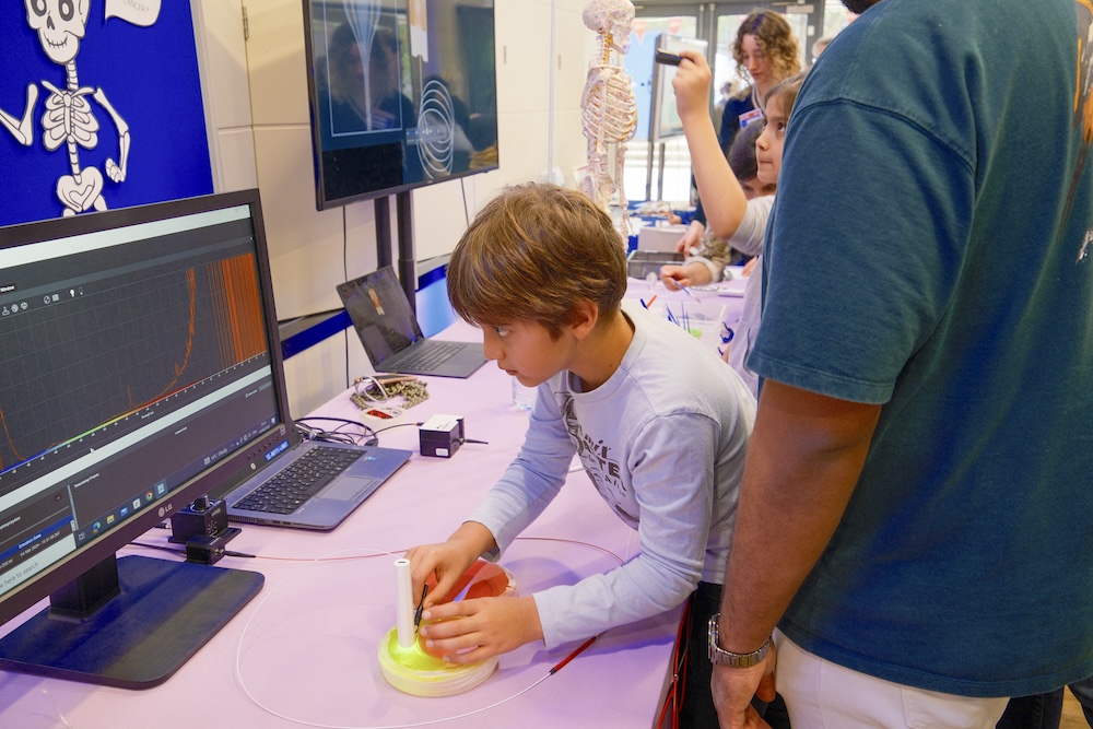 Children were particularly excited to work with invisible ink linked to electrochemical pH sensors and to find fluorescent disease markers on a skeleton using optical sensors. They experienced the challenges of manually manoeuvring catheters and appreciated the ease of joystick-controlled robotics in a micro-maze. Our motion-capturing art display allowed visitors to create art through dance, engaging both children and adults. Furthermore, we had the opportunity to engage in sophisticated conversations with adults about our research on biomarkers, autonomous surgery, and other ongoing projects within the division.