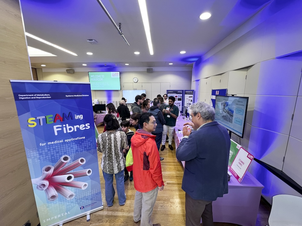 The Division of Systems Medicine had a successful exhibition titled STEAMing Fibres, organised by Dr. Temelkuran and his team at the Great Exhibition Road Festival this year. The exhibit welcomed over 3,000 visitors, offering a variety of engaging activities and demonstrations exploring medical devices made from fibres. Designed specifically with children in mind, these demonstrations aimed to ignite a lifelong interest in the arts and sciences by tapping into their natural curiosity and creativity.