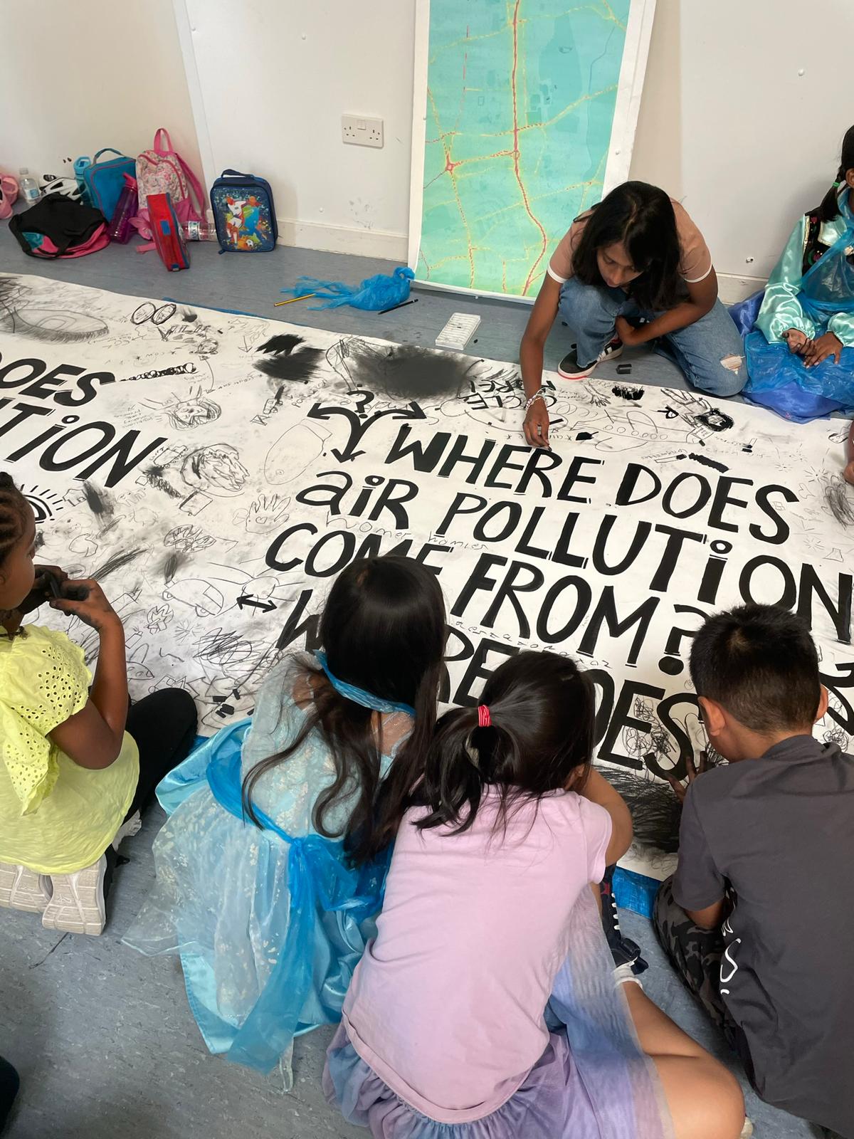 Artist Mo Langmuir, originally from West London, and community champion Janis Walton worked with families from the Girls Create a Vibe (White City) and Old Oak kids clubs to explore views of local air pollution via hands-on workshops. This resulted in not your typical map. The textile artwork reveals Nitrogen Dioxide levels in W10, W11 and W12 postcodes, combined with the feelings and movements of participants over 24 hours of their day, through prints, drawing and stitching.