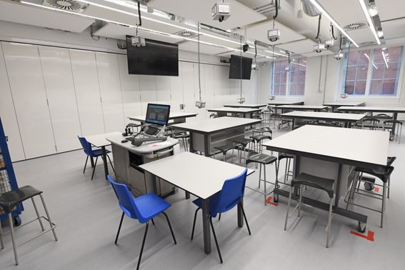 - Layouts possible: Flat Floor Teaching Space (tables of 6)