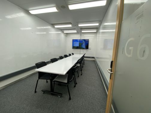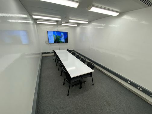 - Room facilities: PC, 8x medium-sized screens, 8x tables with 6x chairs