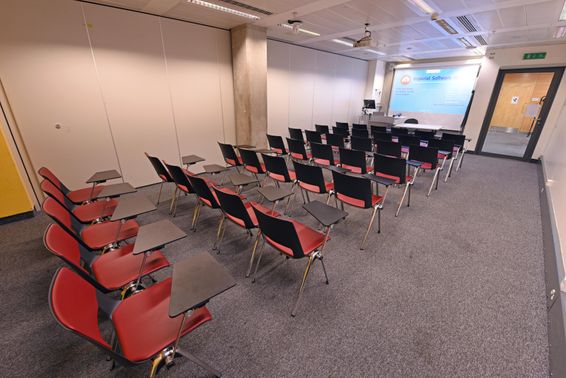 - Room facilities: PC, wifi access, ceiling-mounted projector and screen, whiteboard, flip chart, overhead projector