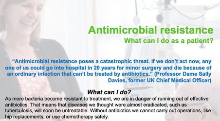 Anyone and everyone can help here by talking about the problem with friends and family. UK Health Security Agency (UK-HSA) has called on everyone become “Antimicrobial Guardians” making a pledge to take just one of a number of actions which will help – see Antibiotic Guardian for more information.