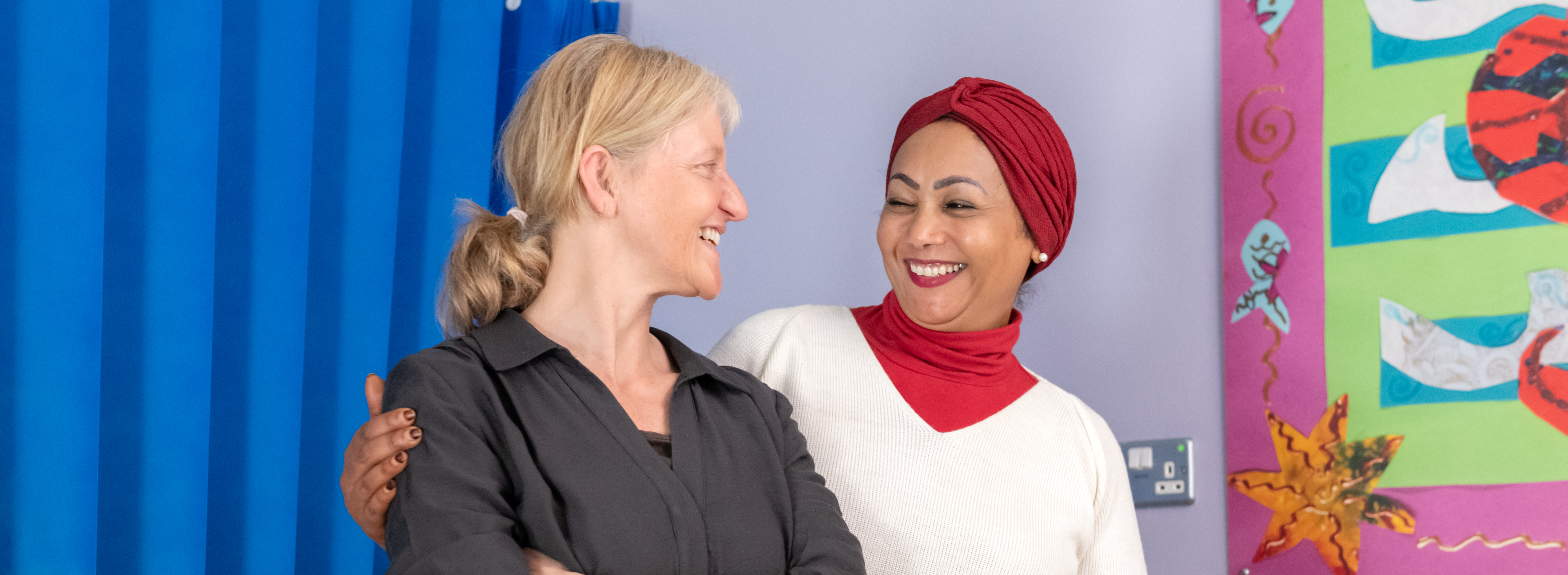 Juliet Albert, pictured here with her colleague Suhad Adam, is a midwife and a previous recipient of an NIHR Pre-Doctoral Clinical Academic Fellowship (PCAF).