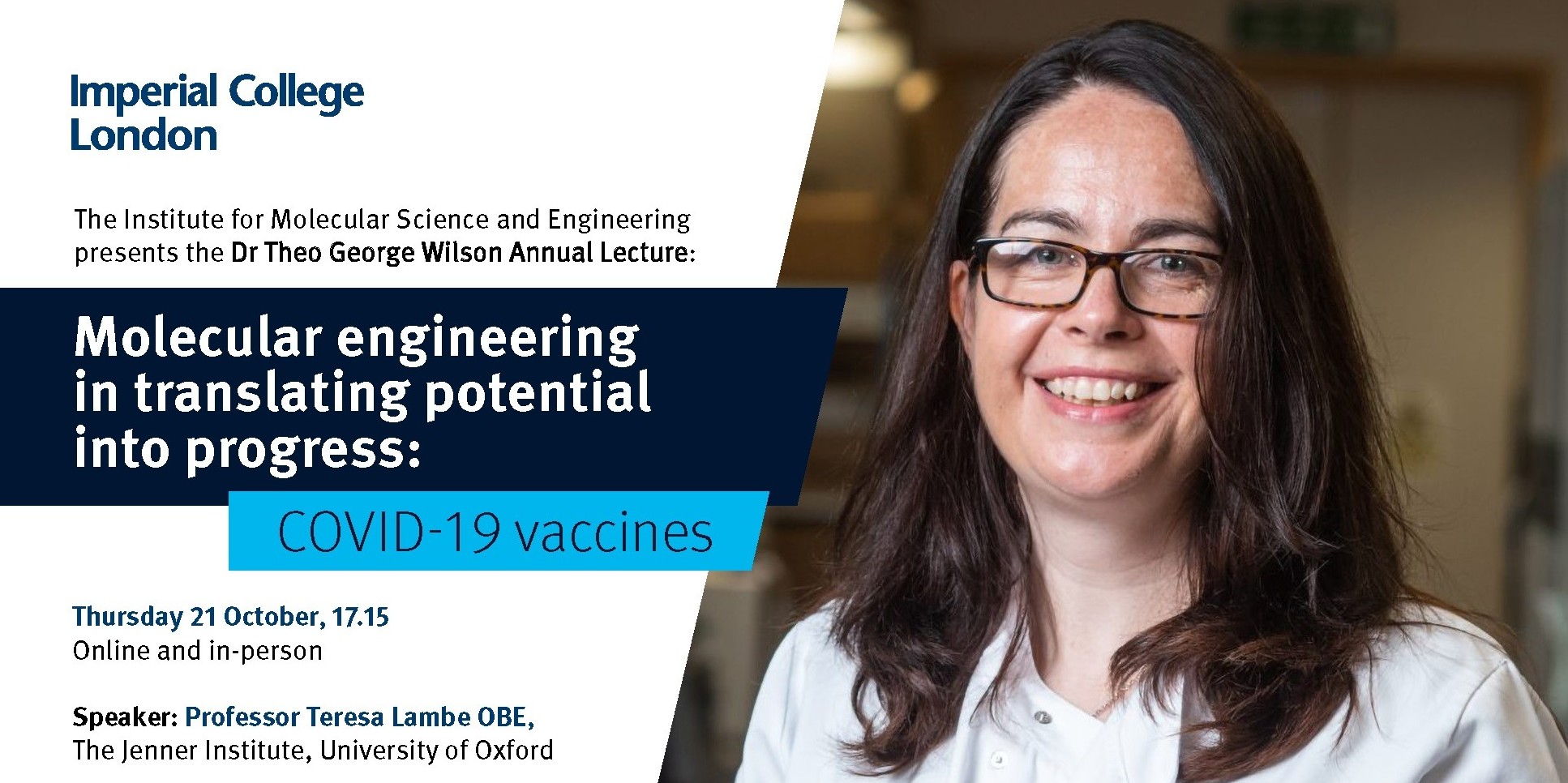 The 2021 Dr Theo George Wilson Annual Lecture was by Professor Teresa Lambe OBE. Professor Teresa Lambe is a Principal Investigator/Group leader based at the Jenner Institute at the University of Oxford. She was at the forefront of the development of the Oxford–AstraZeneca COVID-19 vaccine.