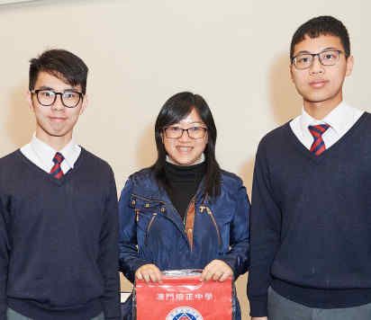 Zinc-air Power', Thomas Choi and Jeremy Hu, from Pui Ching Middle School. The team are pictured above with their teacher and mentor, Ms Wai Man Cheong. The team travelled all the way from Macau to take part in the final here at Imperial.