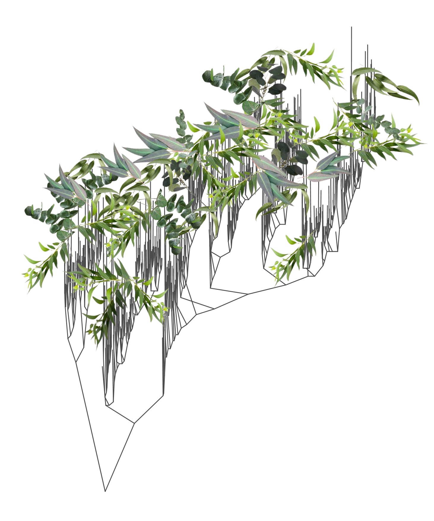 Leaves of the Eucalypts, representing the Eucalyptus phylogeny.