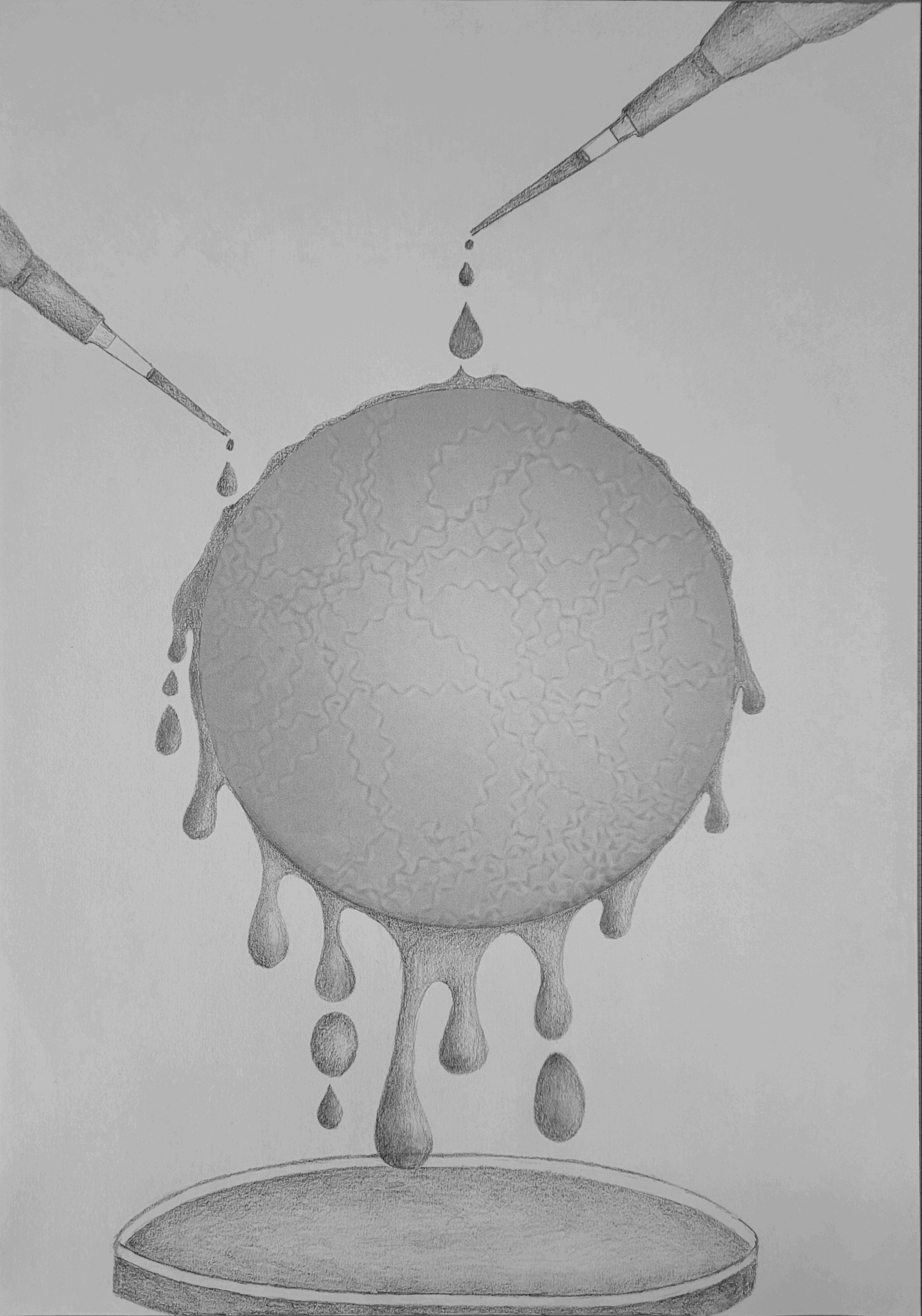 This juxtaposition of different movements in this piece is astonishing. From the fall of the droplets to the exploration of C. elegans. From the hands of both the scientist and the artist at work. Everything moves